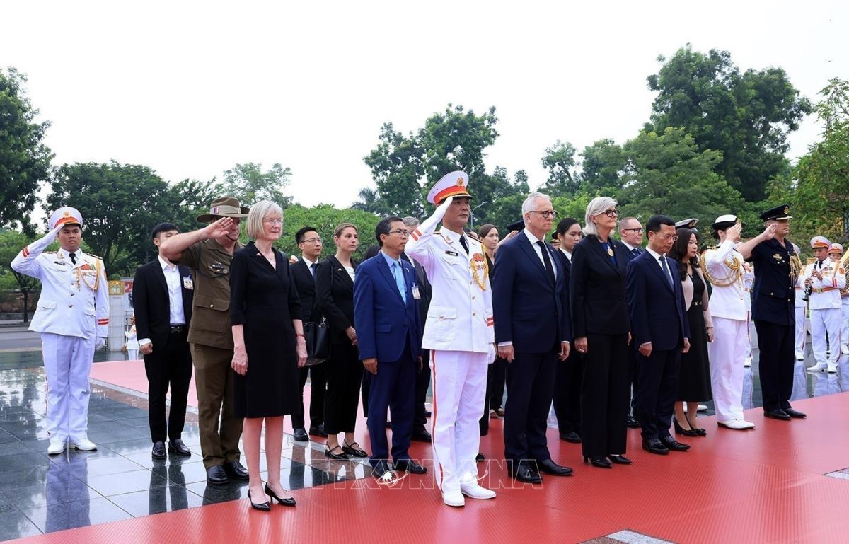 Sáng 10/9/2025, Toàn quyền Australia Sam Mostyn và Phu quân cùng đoàn đại biểu Australia đến đặt hoa tại Đài tưởng niệm các Anh hùng liệt sĩ trên đường Bắc Sơn, Hà Nội.