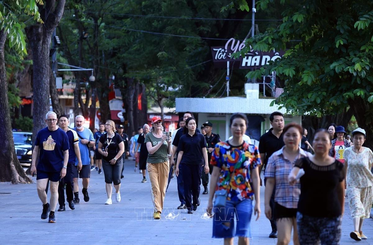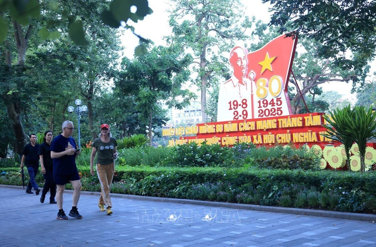 Người dân Thủ đô tập thể dục buổi sáng bên hồ vui mừng chào đón Toàn quyền Australia Sam Mostyn và Phu quân (11/9/2025). Ảnh: Tuấn Anh - TTXVN