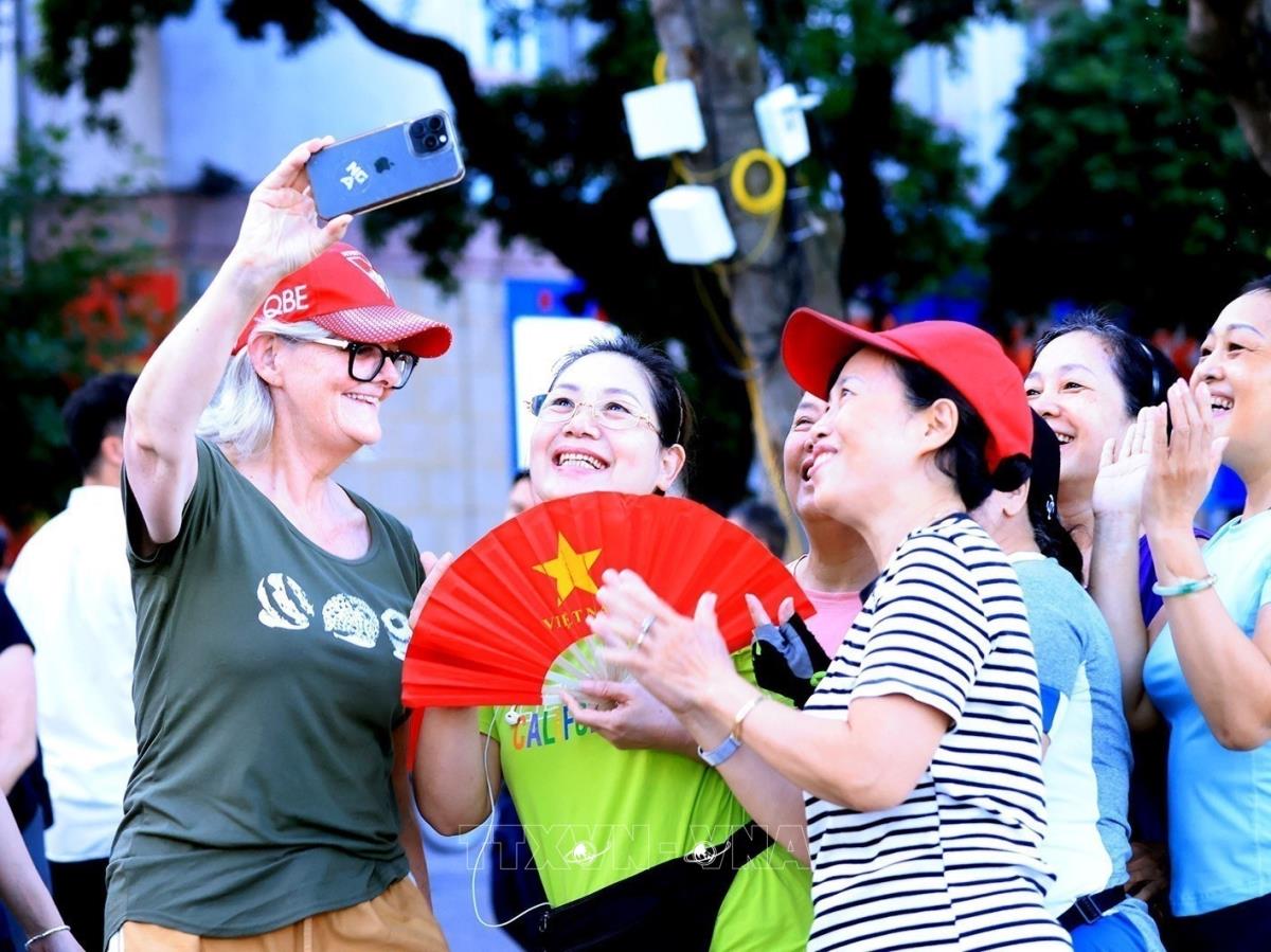 Toàn quyền Australia Sam Mostyn selfie, lưu lại hình ảnh với người dân Hà Nội thân thiện (11/9/2025). Ảnh: Tuấn Anh - TTXVN