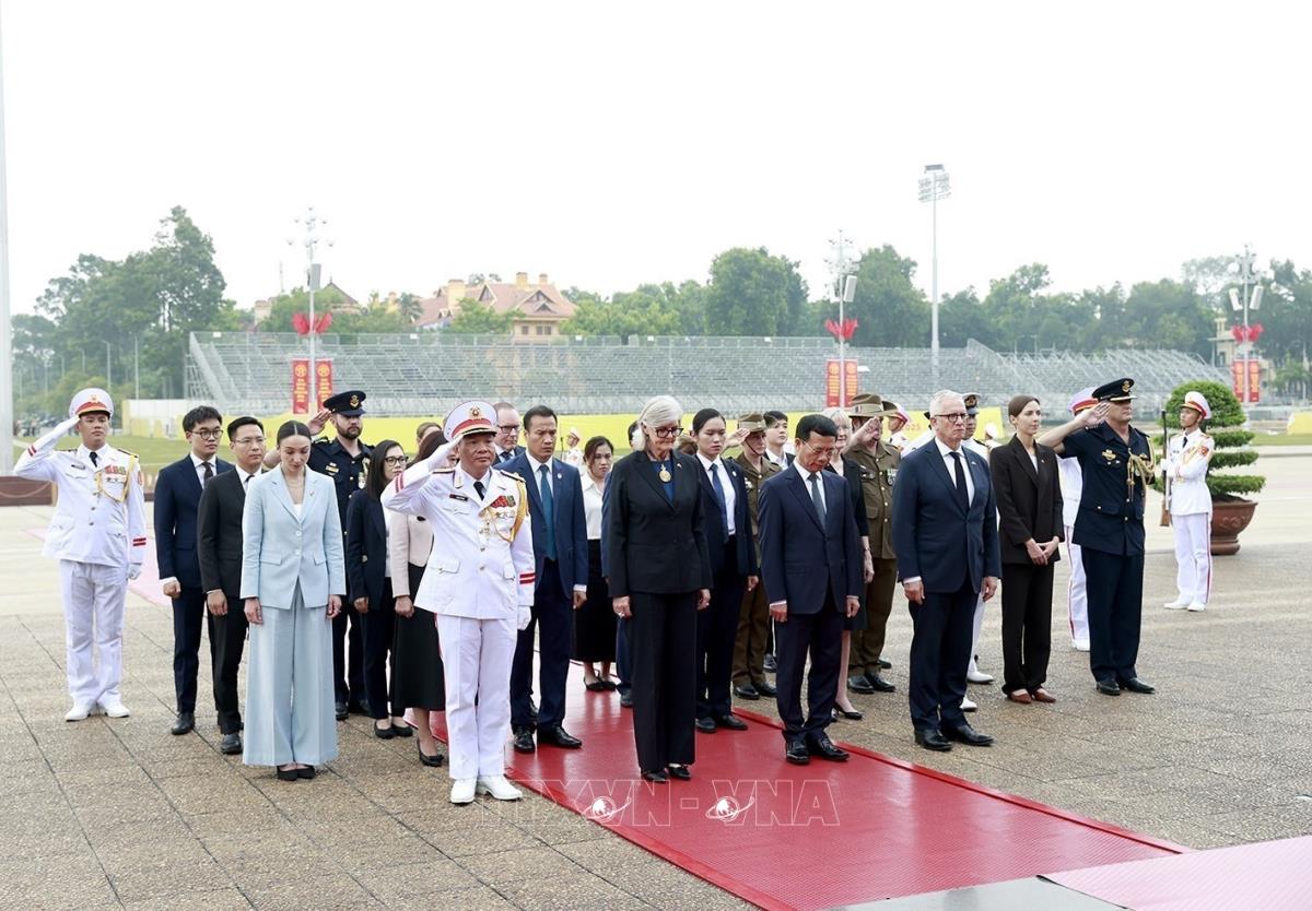 Sáng 10/9/2025, tại Hà Nội, Toàn quyền Australia Sam Mostyn đến đặt vòng hoa và vào Lăng viếng Chủ tịch Hồ Chí Minh.