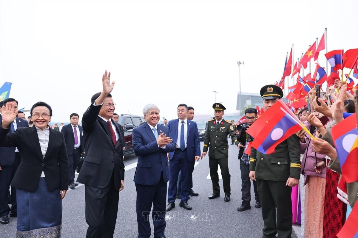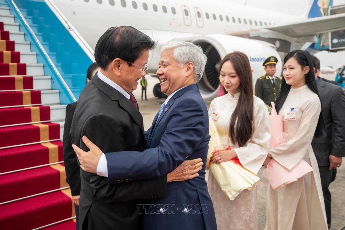 Phó Chủ tịch Thường trực Quốc hội Đỗ Văn Chiến và Phó Chủ tịch nước Võ Thị Ánh Xuân đón Tổng Bí thư Ban Chấp hành Trung ương Đảng Nhân dân cách mạng Lào, Chủ tịch nước Cộng hòa Dân chủ Nhân dân Lào Thongloun Sisoulith tại sân bay Quốc tế Nội Bài (26/1/2026). Ảnh: Minh Đức – TTXVN •
