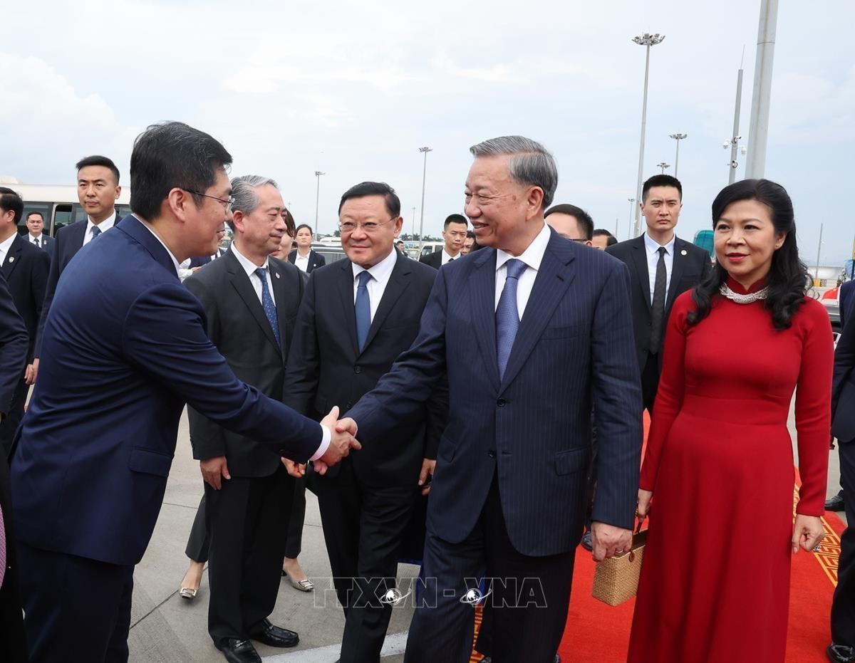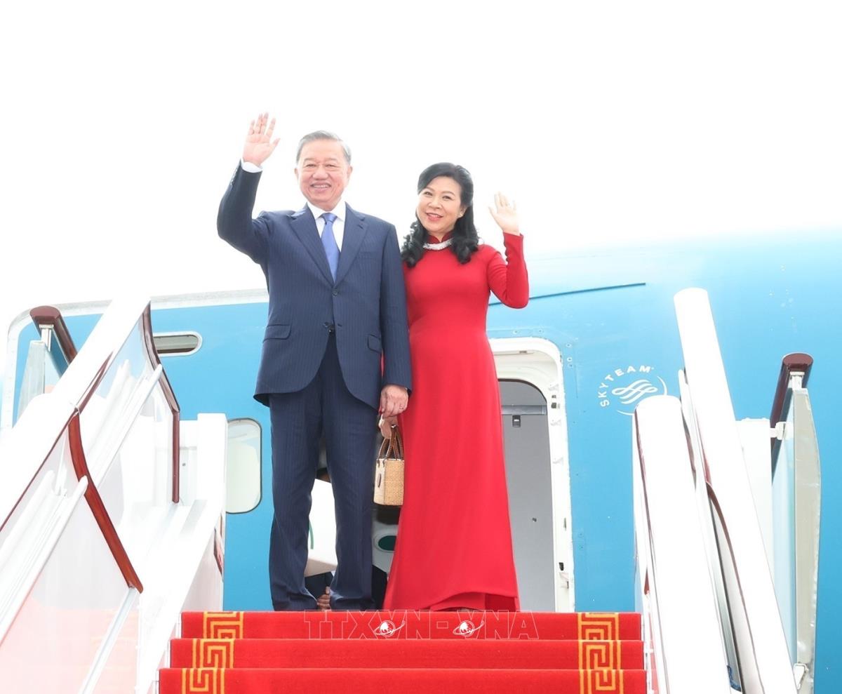 Tổng Bí thư, Chủ tịch nước Tô Lâm và Phu nhân rời Sân bay quốc tế Bạch Vân, thành phố Quảng Châu, tỉnh Quảng Đông. Ảnh: Trí Dũng – TTXVN