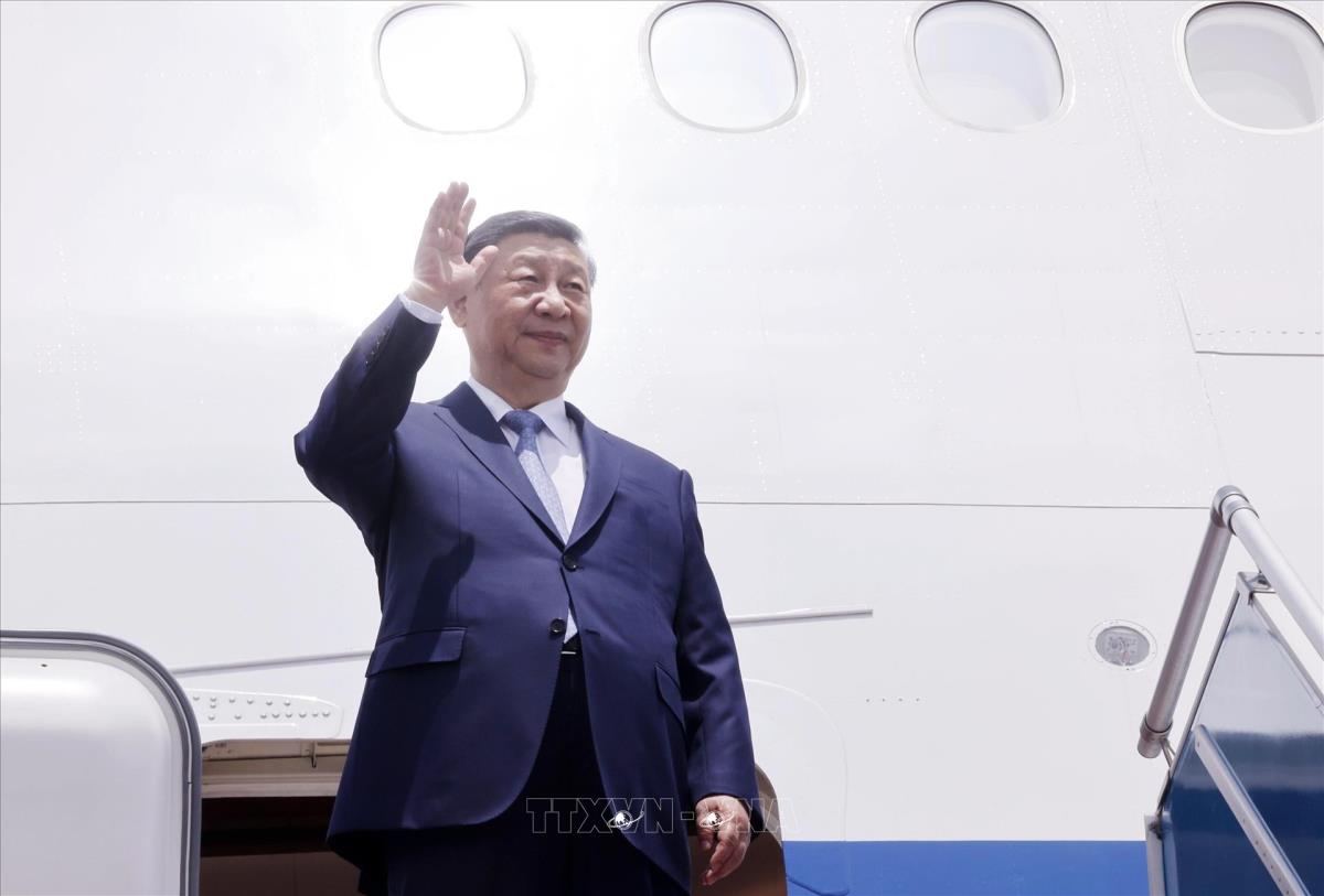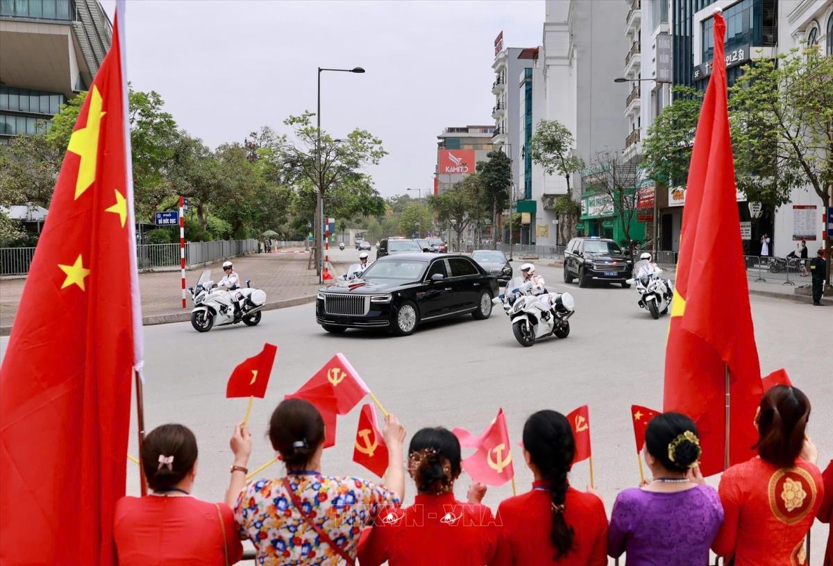 Tổng Bí thư, Chủ tịch nước Trung Quốc Tập Cận Bình đến Thủ đô Hà Nội, bắt đầu chuyến thăm cấp Nhà nước tới Việt Nam (14/4/2025). Ảnh: Lâm Khánh - TTXVN