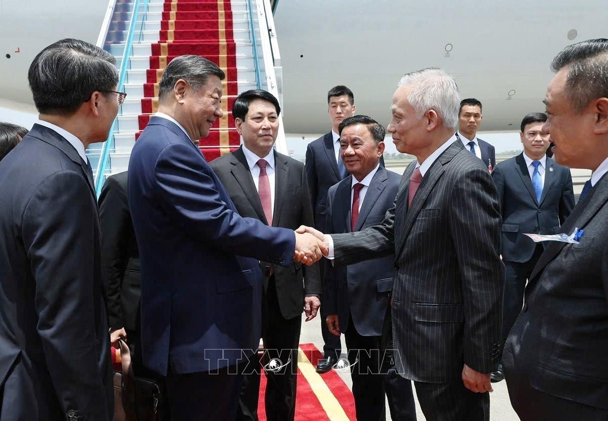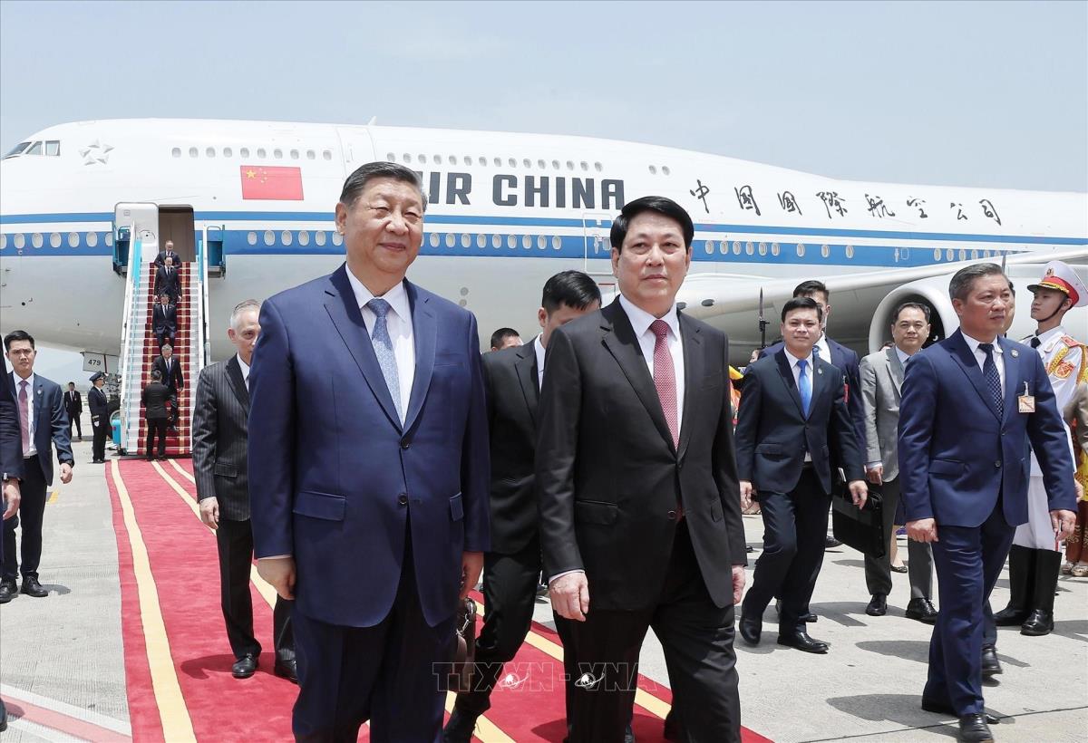 Tổng Bí thư, Chủ tịch nước Trung Quốc Tập Cận Bình đến Hà Nội, bắt đầu chuyến thăm cấp Nhà nước tới Việt Nam (14/4/2025). Ảnh: Lâm Khánh - TTXVN