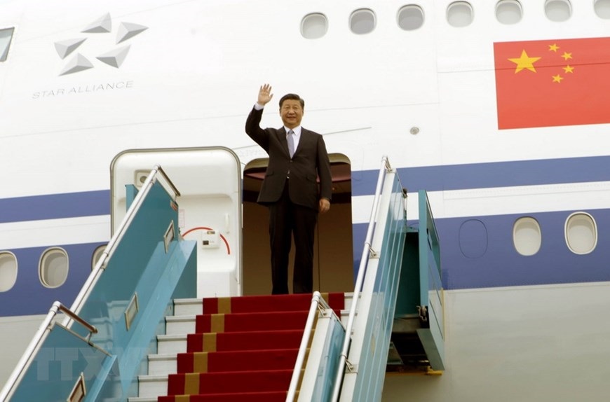 Tổng Bí thư, Chủ tịch nước Trung Quốc Tập Cận Bình đến Sân bay Quốc tế Nội Bài, Hà Nội. (Ảnh: Nguyễn Dân/TTXVN)