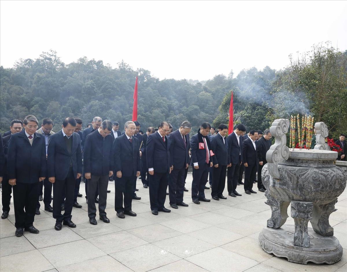 Tổng Bí thư Tô Lâm cùng đoàn công tác Trung ương dâng hương tưởng niệm Chủ tịch Hồ Chí Minh tại Đền thờ Bác Hồ tại Khu Di tích quốc gia đặc biệt Pác Bó (Cao Bằng), ngày 28/1/2026). Ảnh: Thống Nhất -TTXVN