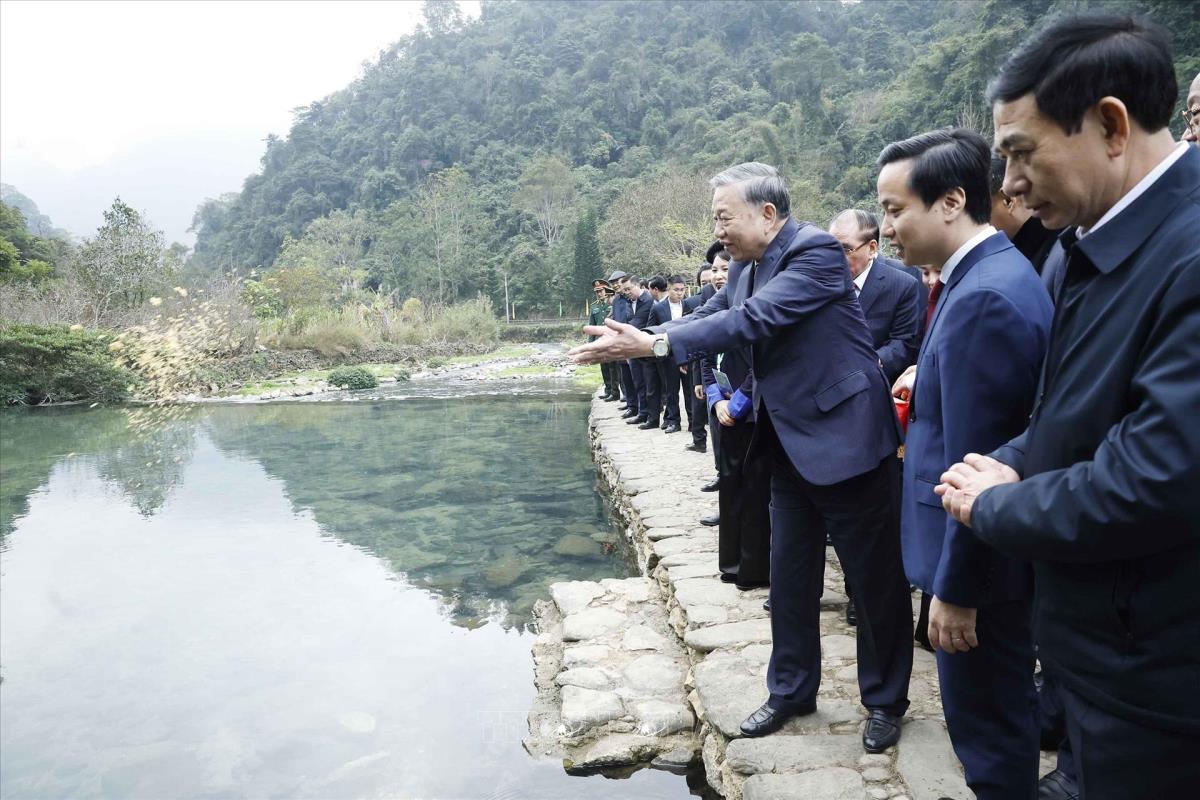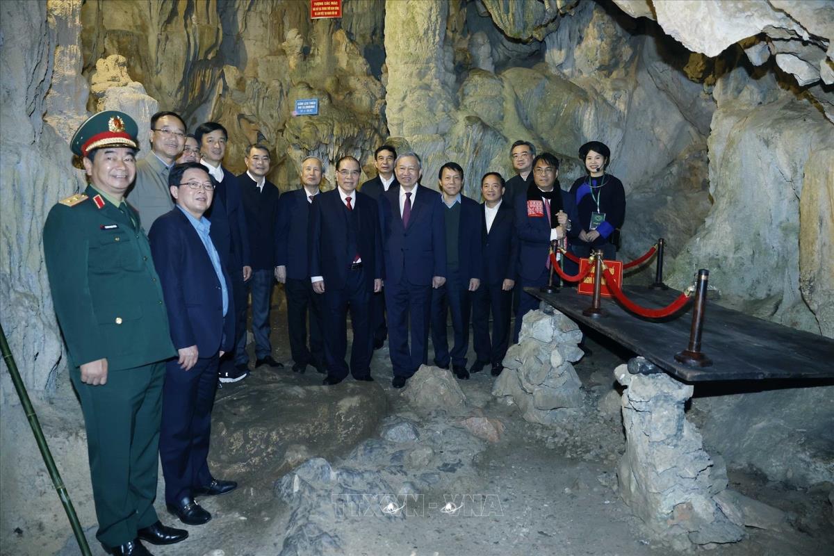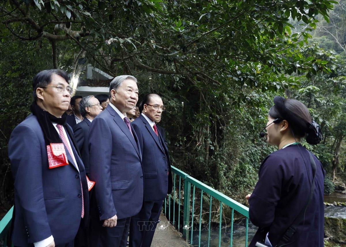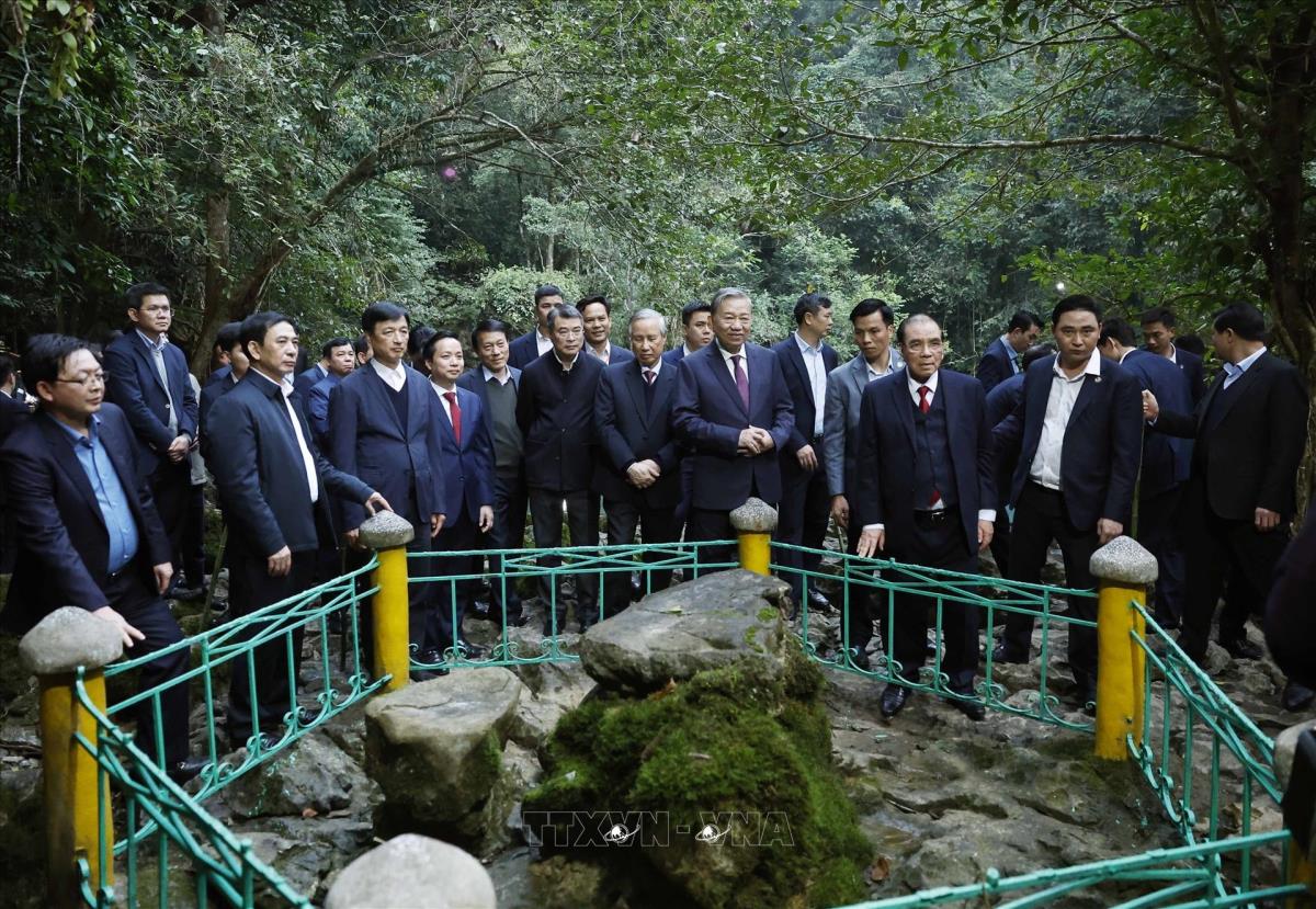 Tổng Bí thư Tô Lâm thăm hang Cốc Bó. Ảnh: Thống Nhất - TTXVN