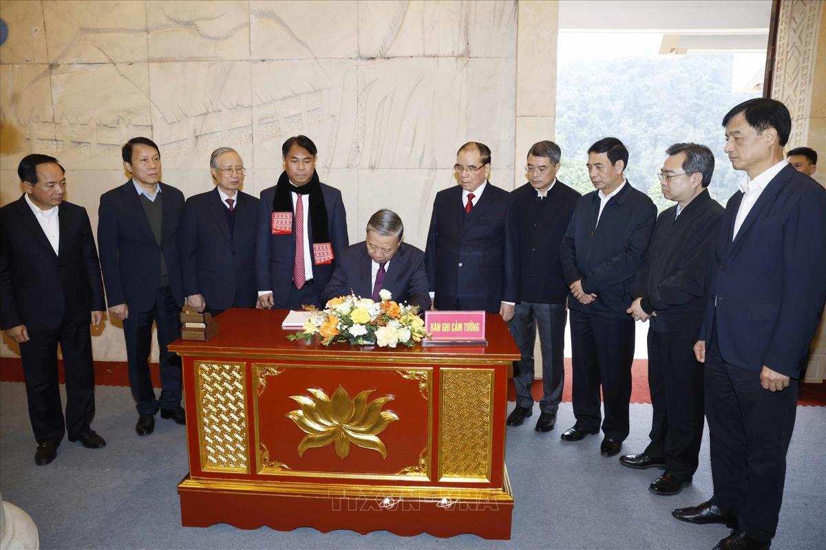 Tổng Bí thư Tô Lâm ghi lưu bút tại Đền thờ Bác Hồ trong Khu Di tích quốc gia đặc biệt Pác Bó (28/1/2026). Ảnh: Thống Nhất - TTXVN