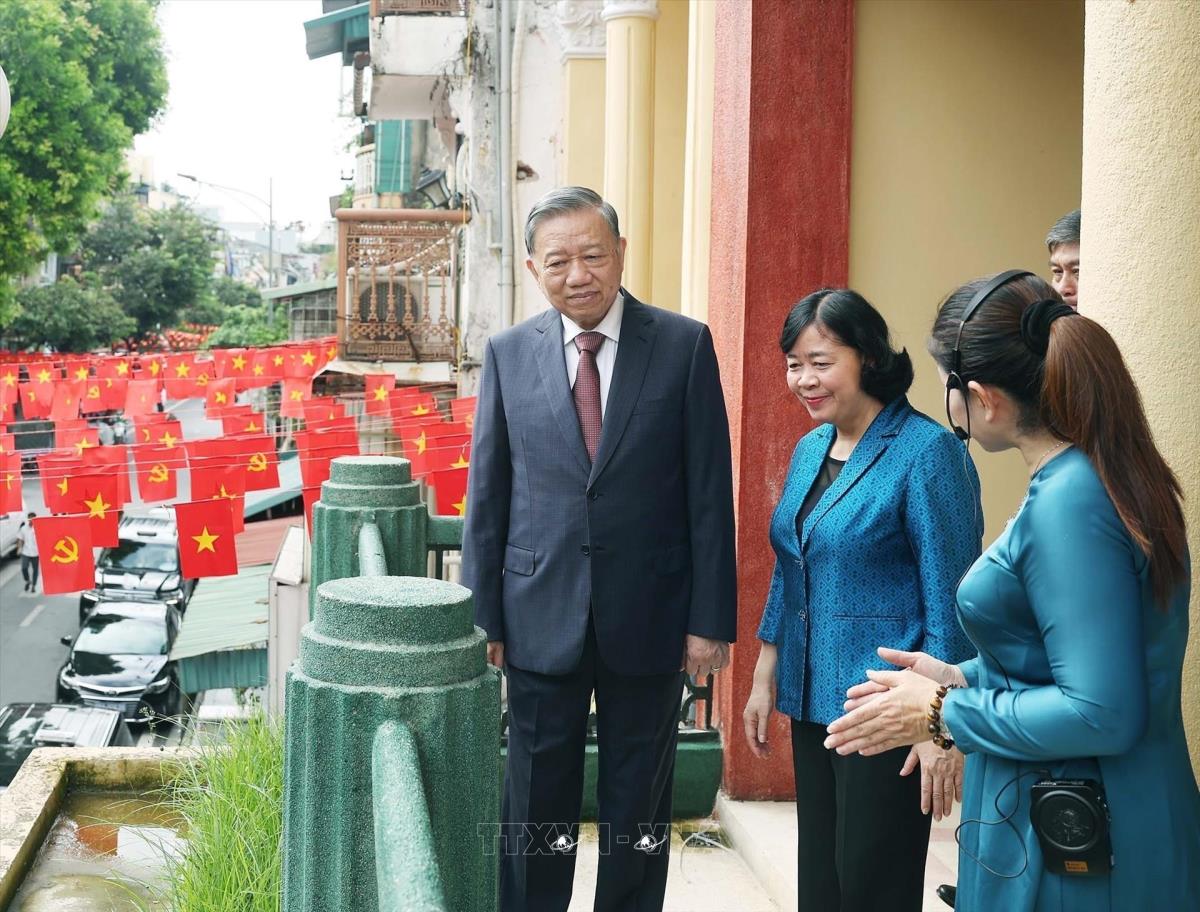 Tổng Bí thư Tô Lâm thăm di tích nhà số 48 Hàng Ngang (31/8/2025). Ảnh: Thống Nhất/TTXVN
