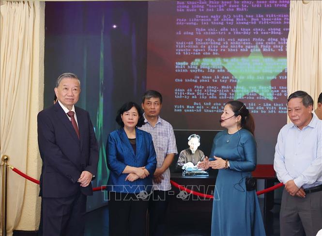 Tổng Bí thư Tô Lâm xem trưng bày tại di tích 48 Hàng Ngang (31/8/2025). Ảnh: Thống Nhất/TTXVN
