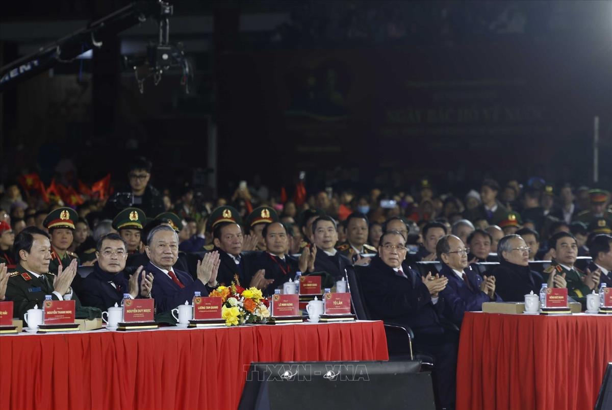 [Photo] Tổng Bí thư dự Chương trình kỷ niệm 85 năm Ngày Bác Hồ về nước trực tiếp Lãnh đạo Cách mạng Việt Nam “Hai tay xây dựng một sơn hà”