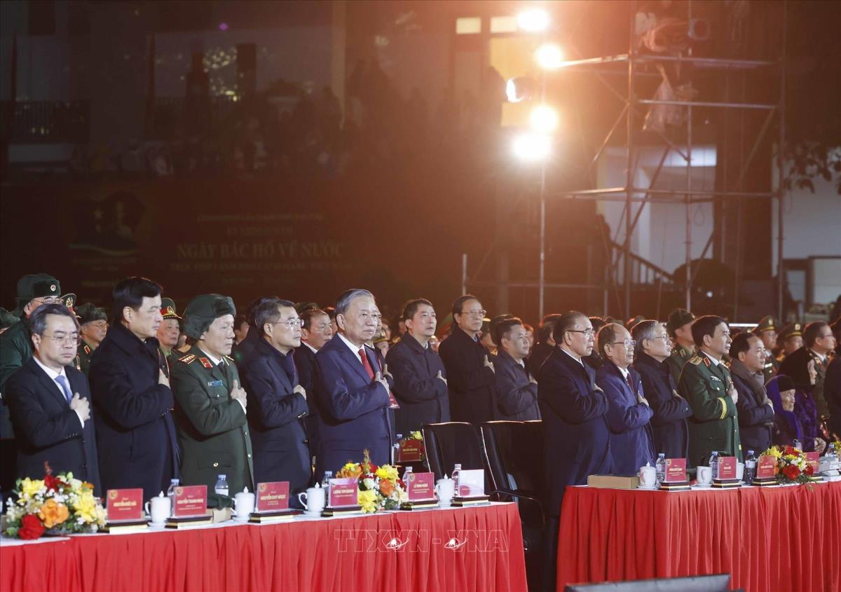 Hà Nội (TTXVN 28/1/2026) Tối 28/1/2026, tại Cao Bằng, Tổng Bí thư Tô Lâm, các đồng chí lãnh đạo, nguyên lãnh đạo Đảng, Nhà nước dự Chương trình kỷ niệm 85 năm Ngày Bác Hồ về nước trực tiếp Lãnh đạo Cách mạng Việt Nam (28/1/1941-28/1/2026) “ Hai tay xây dựng một sơn hà”.