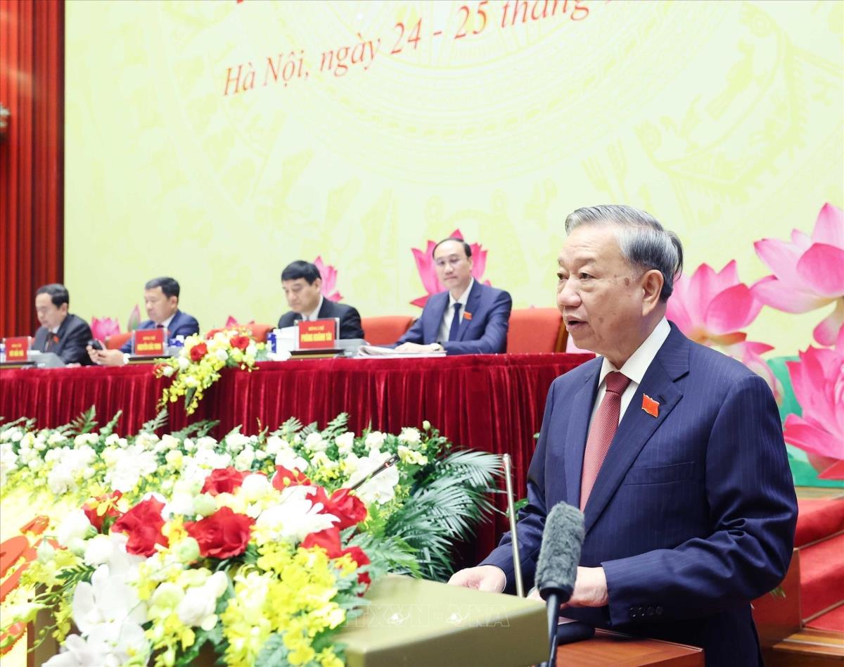 Tổng Bí thư Tô Lâm phát biểu chỉ đạo Đại hội đại biểu Đảng bộ Quốc hội lần thứ nhất (25/9/2025). Ảnh: Thống Nhất – TTXVN