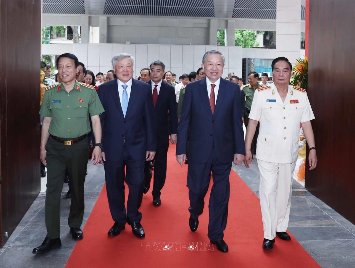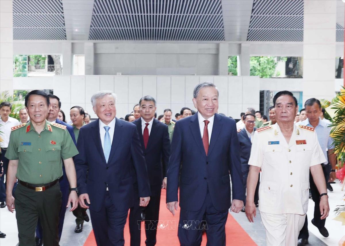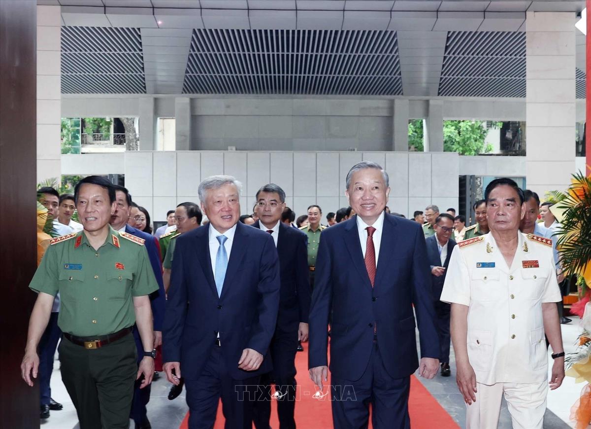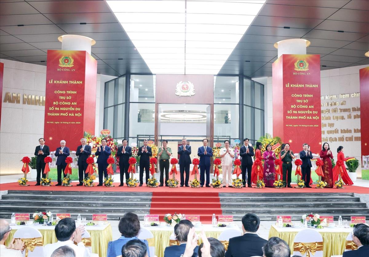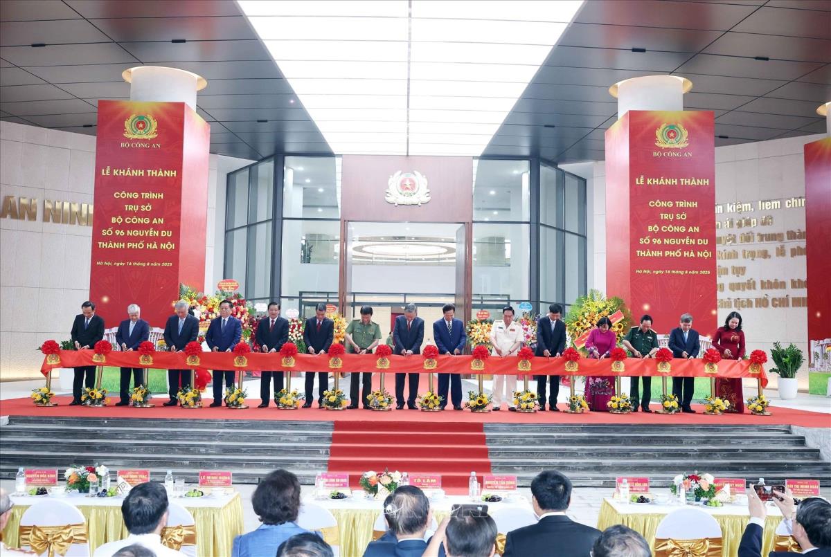 Hà Nội (TTXVN 16/8/2025) Sáng 16/8/2025, Tổng Bí thư Tô Lâm cùng các đồng chí lãnh đạo, nguyên lãnh đạo Đảng, Nhà nước dự Lễ Khánh thành công trình Trụ sở Bộ Công an tại số 96 Nguyễn Du, thành phố Hà Nội.