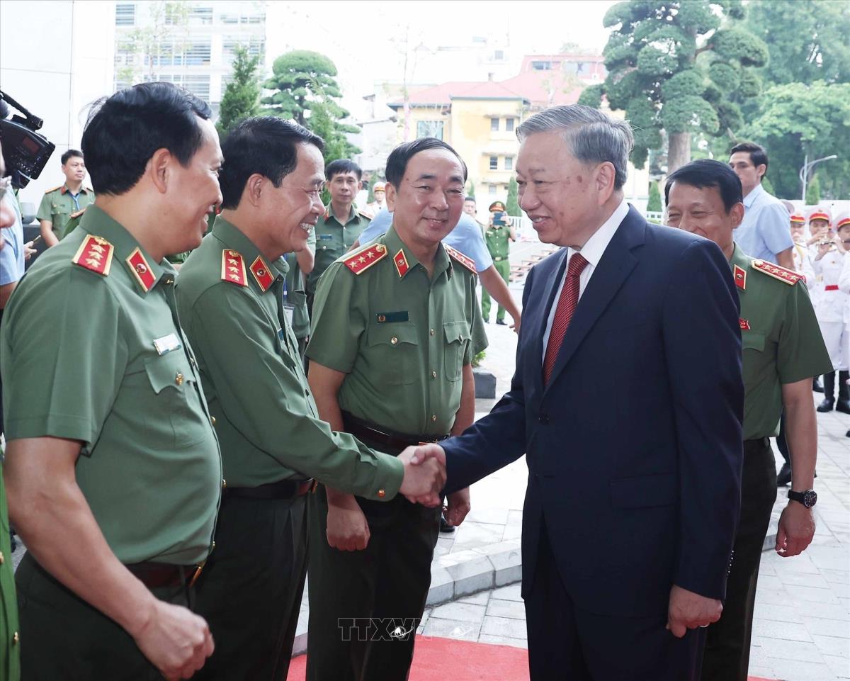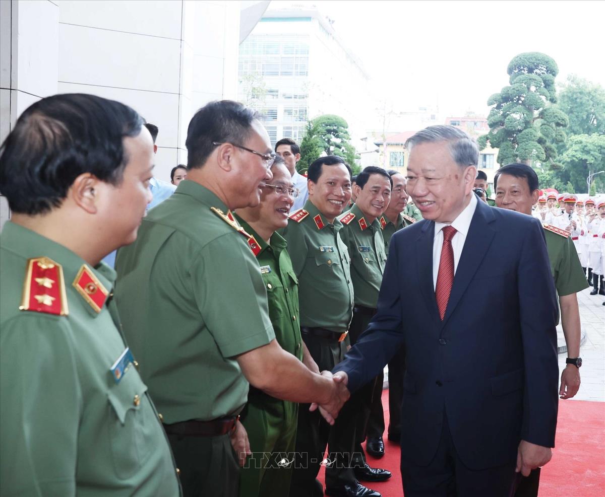 Tổng Bí thư Tô Lâm đến dự Lễ khánh thành công trình Trụ sở Bộ Công an (16/8/2025). Ảnh: Thống Nhất-TTXVN