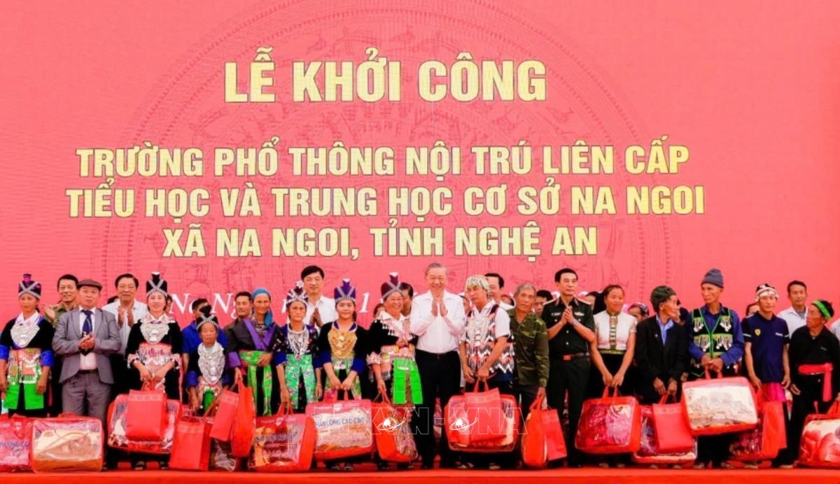 Hà Nội (TTXVN 11/10/2025) Ngày 11/10/2025, tại xã Na Ngoi (tỉnh Nghệ An), Tổng Bí thư Tô Lâm dự Lễ khởi công xây dựng Trường Phổ thông nội trú liên cấp Tiểu học và Trung học cơ sở Na Ngoi. Công trình được triển khai theo chủ trương mới của Bộ Chính trị về đầu tư xây dựng 248 trường phổ thông nội trú liên cấp tiểu học, trung học cơ sở tại các xã biên giới đất liền.