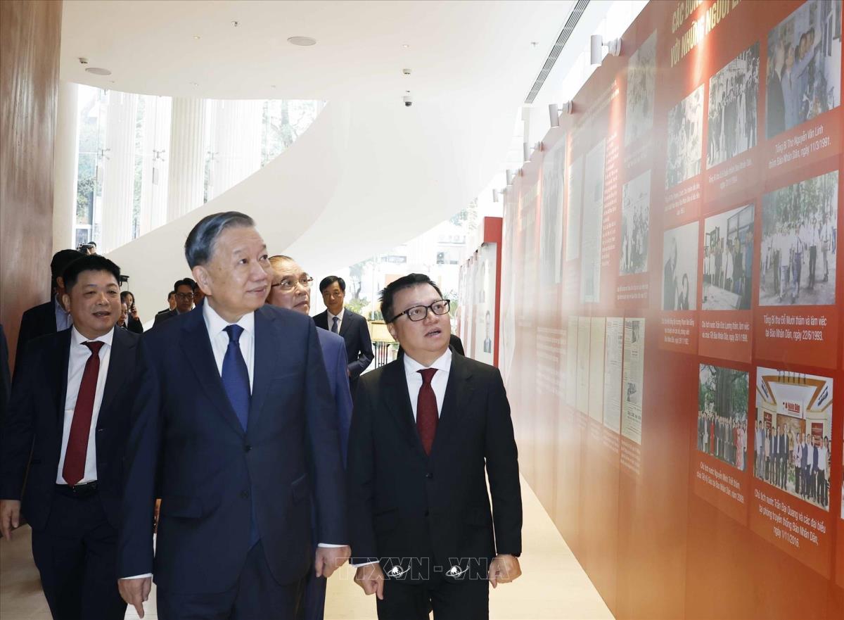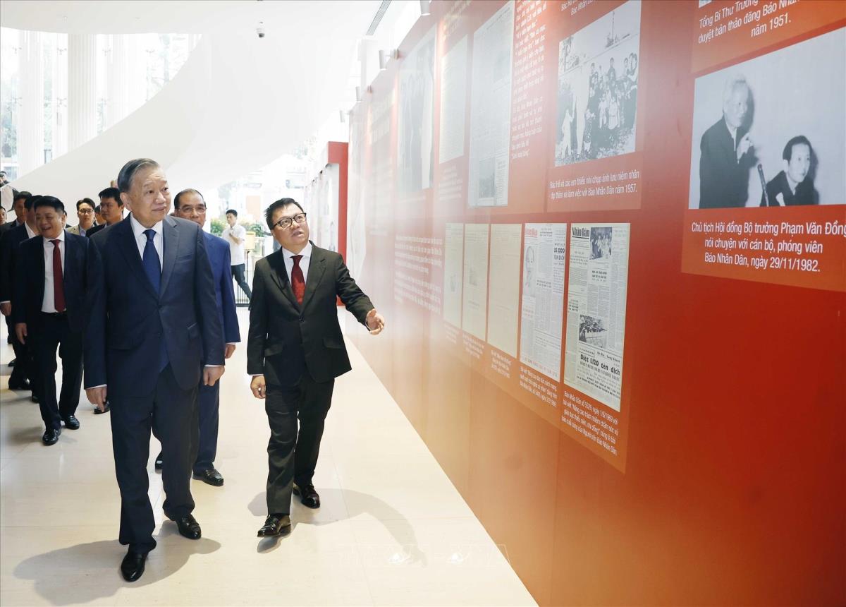 Tổng Bí thư Tô Lâm thăm phòng truyền thống của Báo Nhân Dân (11/3/2026). Ảnh: Thống Nhất – TTXVN