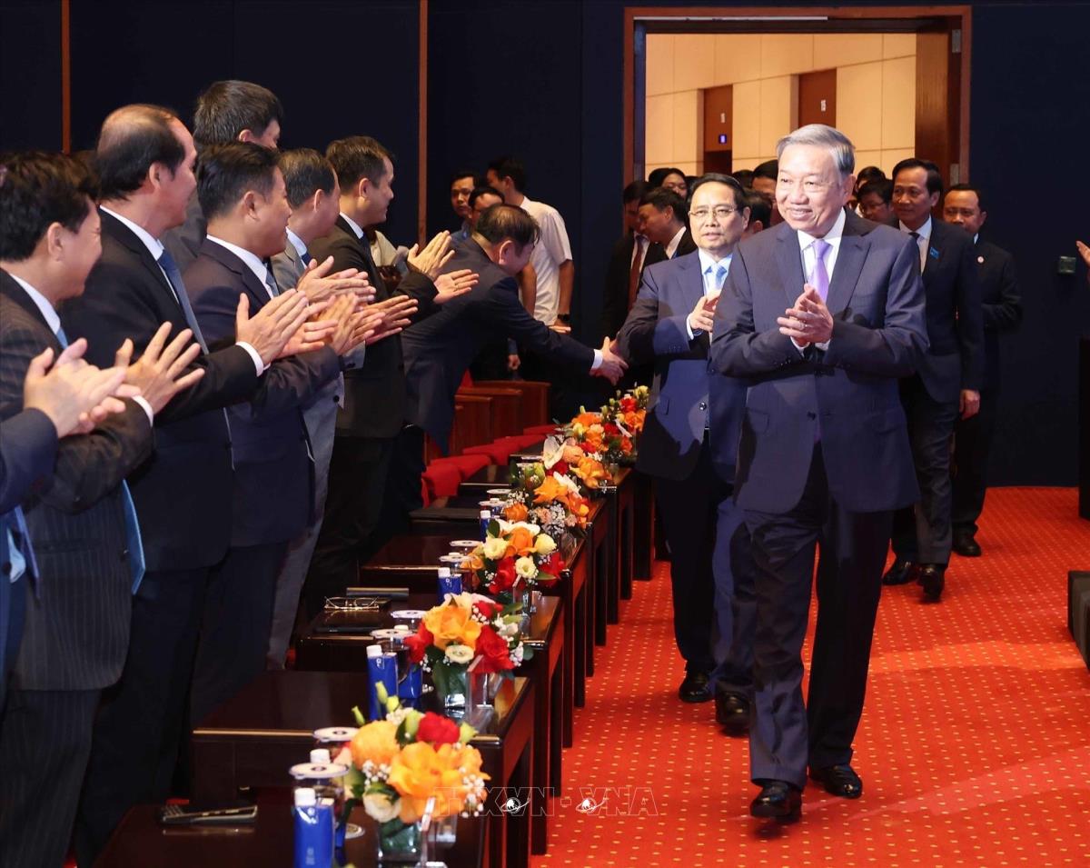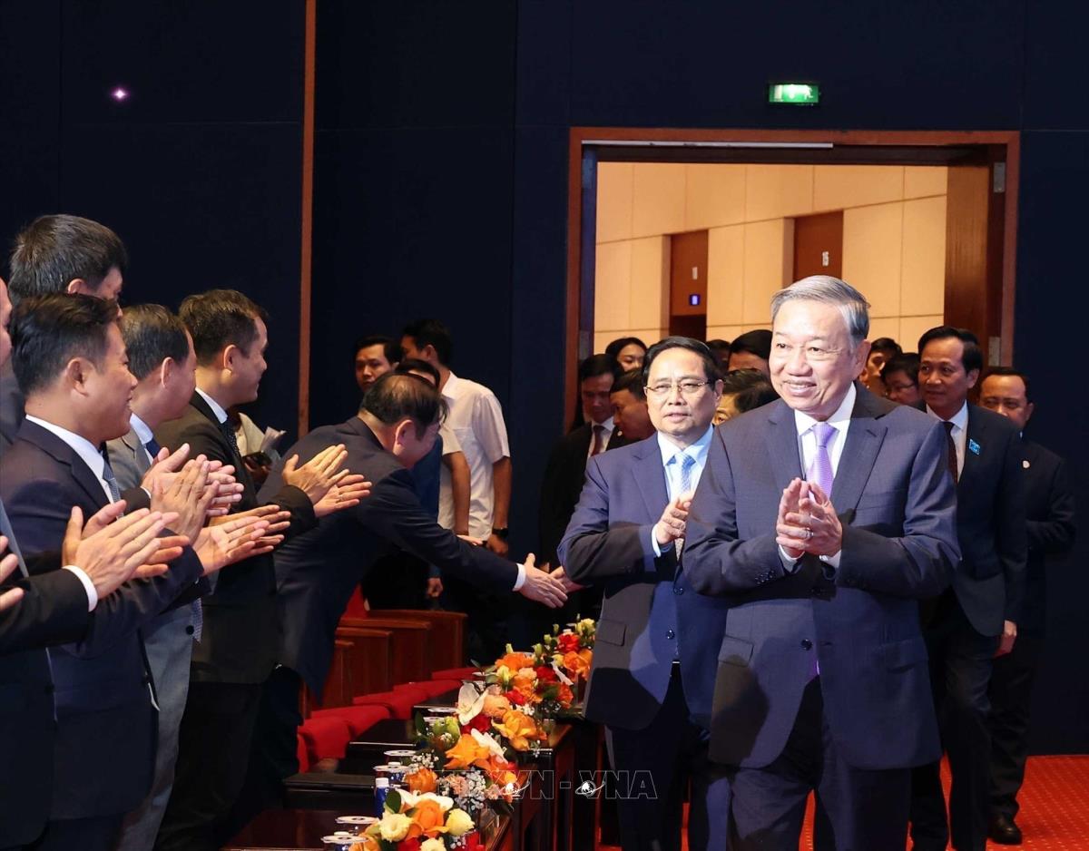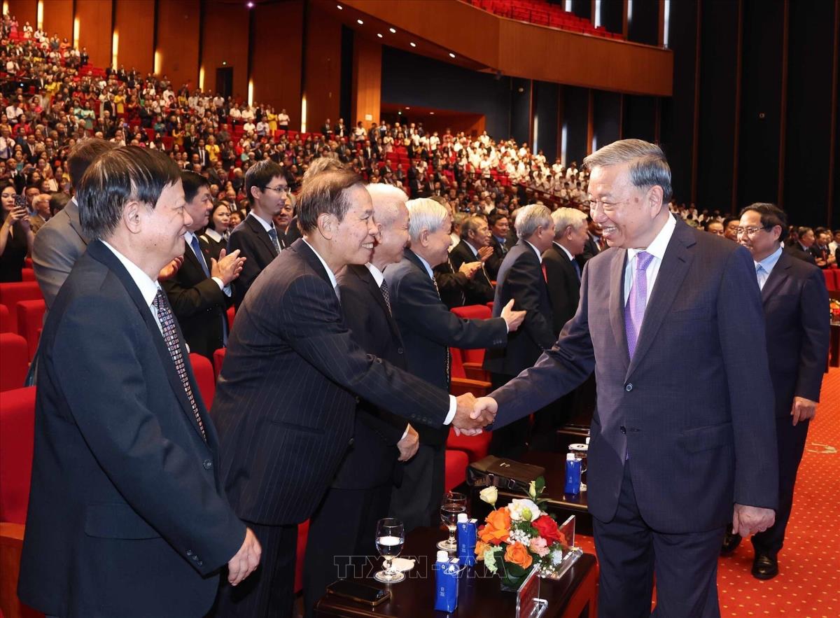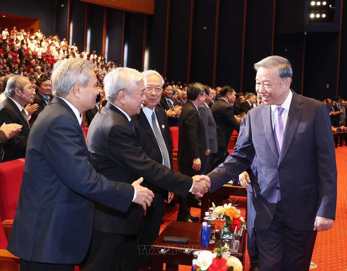 Tổng Bí thư Tô Lâm với đại biểu dự buổi lễ. Ảnh: Thống Nhất - TTXVNv