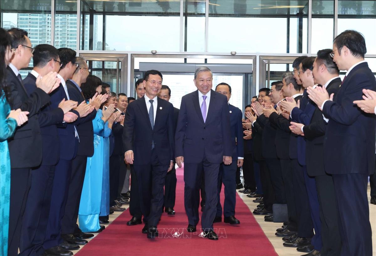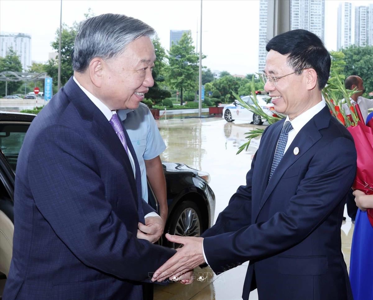 Tổng Bí thư Tô Lâm đến dự Lễ kỷ niệm 80 năm ngành Bưu chính và Viễn thông, 66 năm ngành Khoa học và Công nghệ (29/9/2025). Ảnh: Thống Nhất - TTXVN