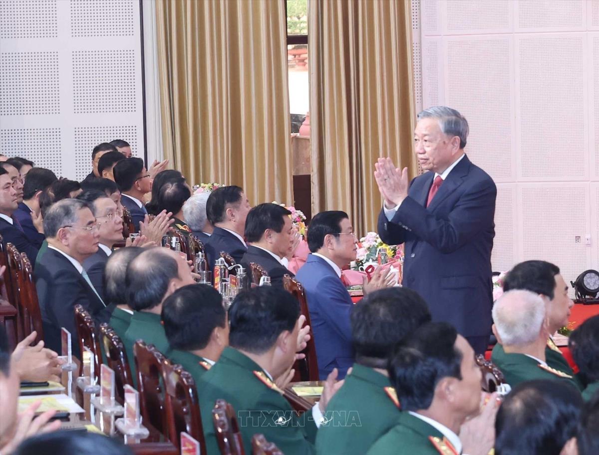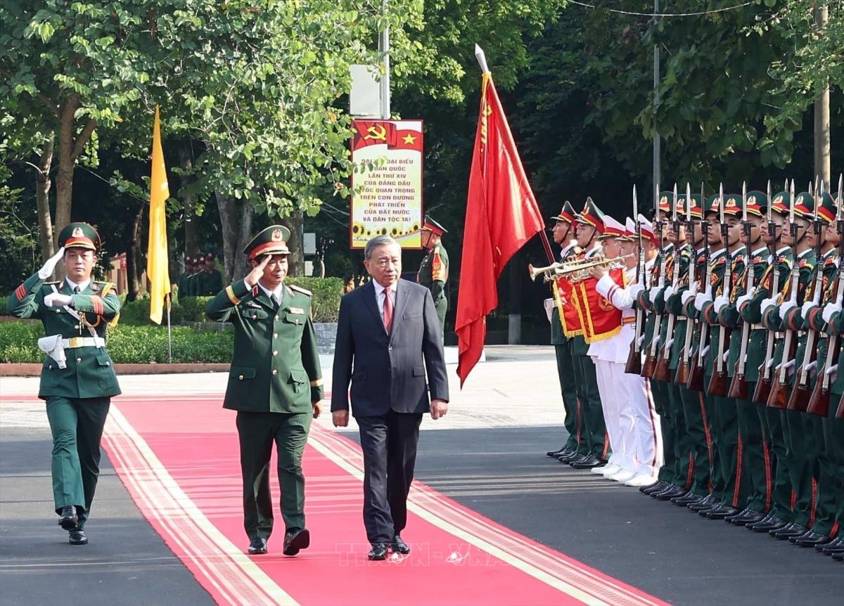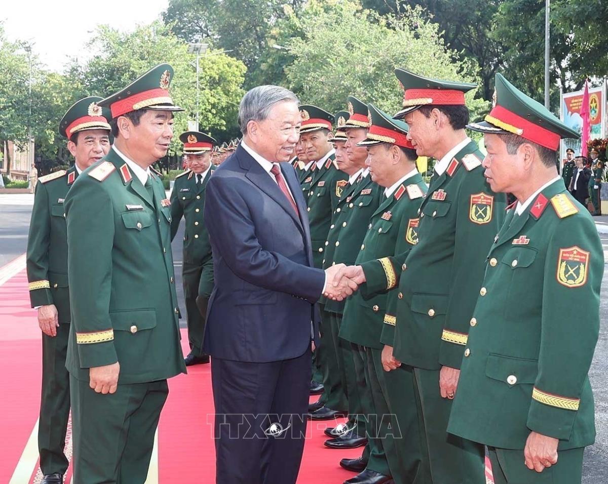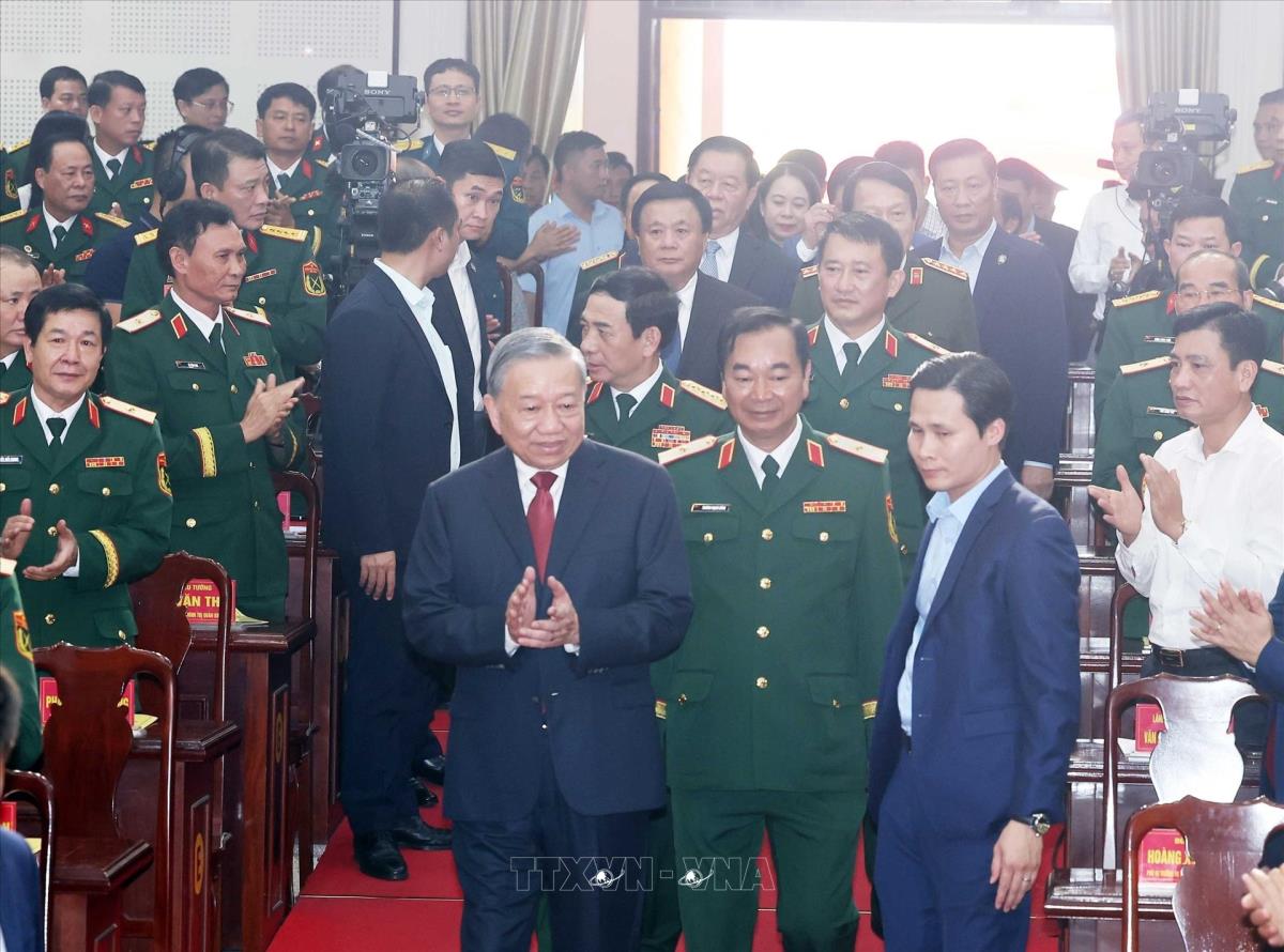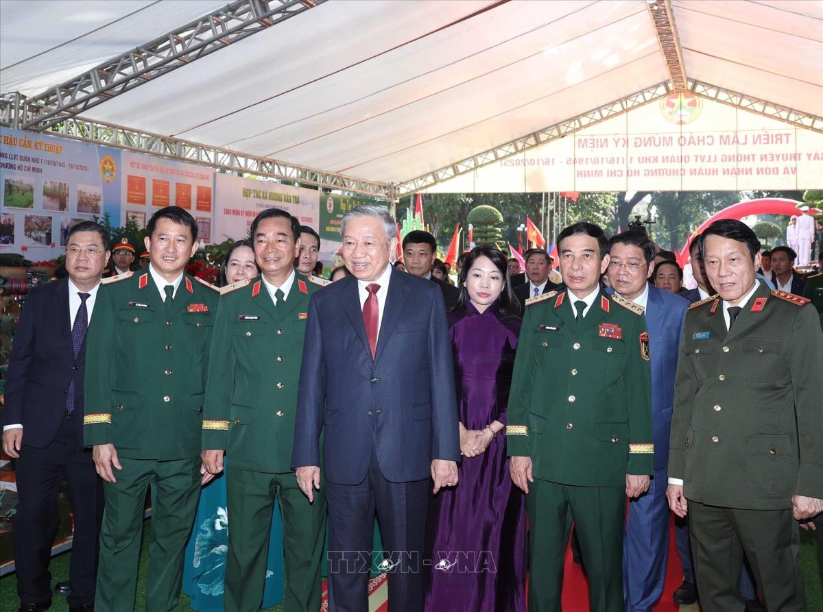 Tổng Bí thư Tô Lâm, Bí thư Quân uỷ Trung ương dự Lễ kỷ niệm 80 năm Ngày truyền thống lực lượng vũ trang Quân khu 1 (16/10/2025). Ảnh: Thống Nhất-TTXVN
