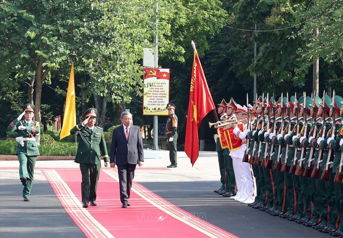 Tổng Bí thư Tô Lâm duyệt Đội danh dự Quân đội nhân dân (16/10/2025). Ảnh: Thống Nhất-TTXVN