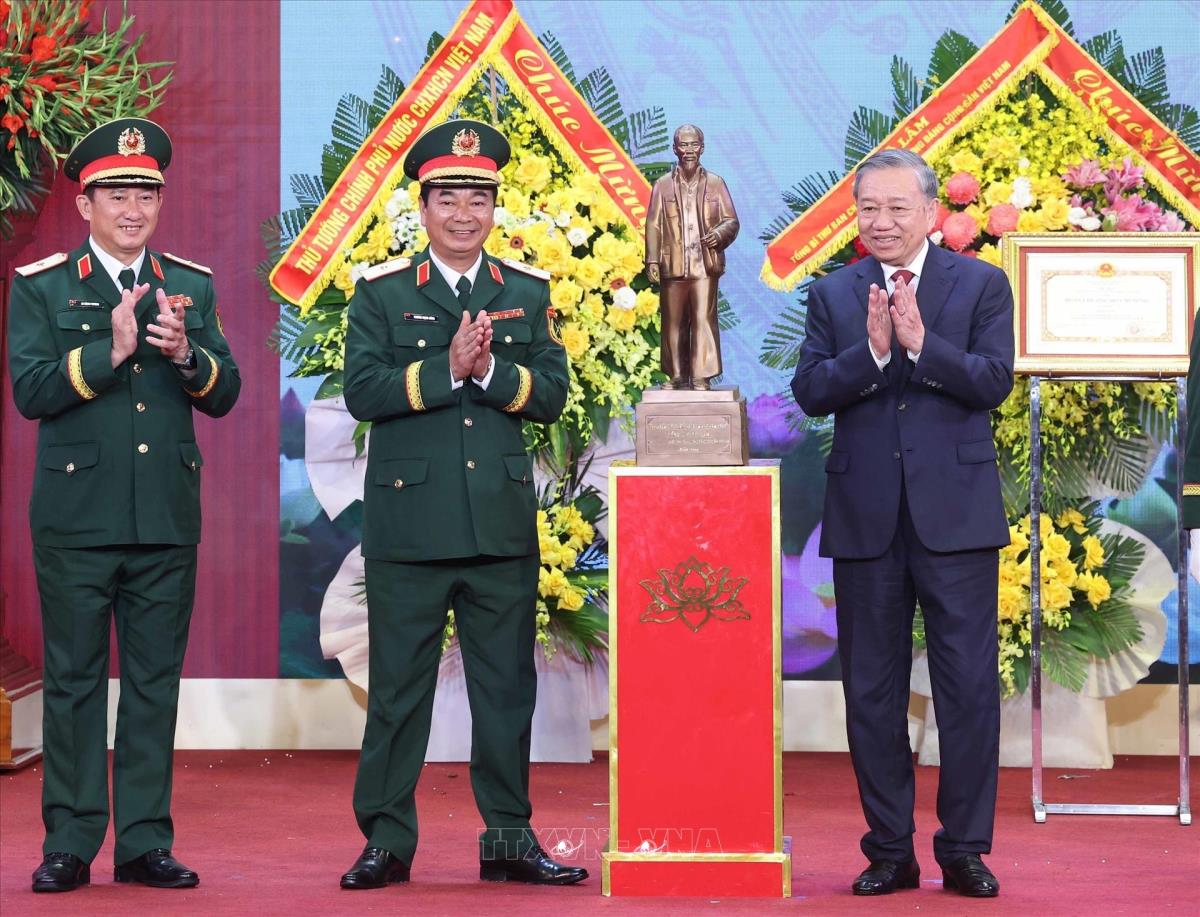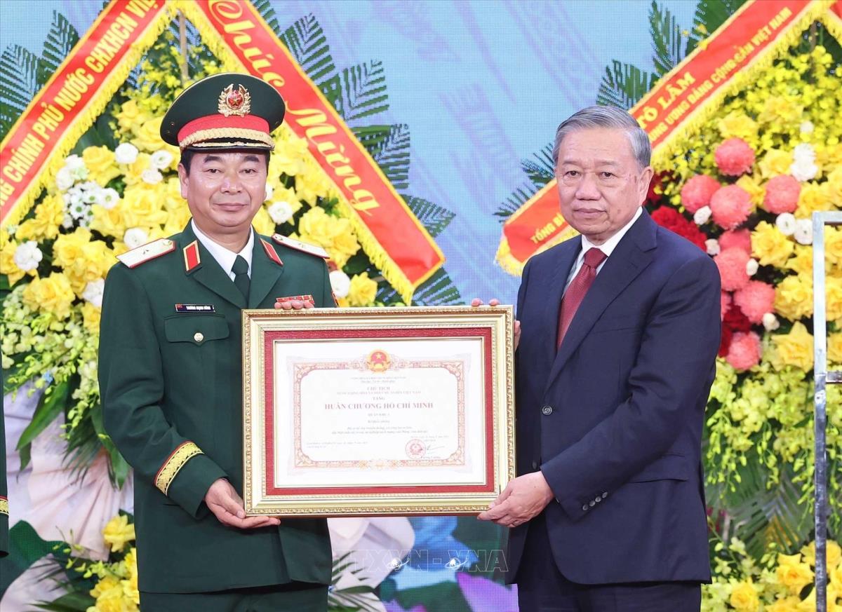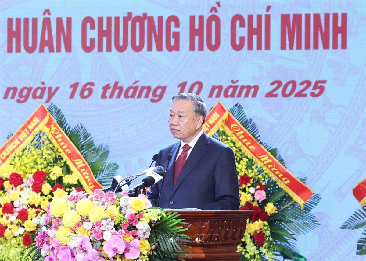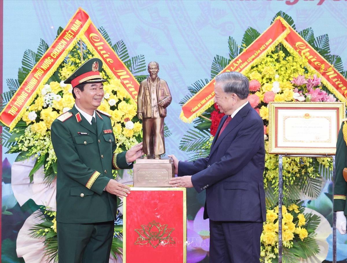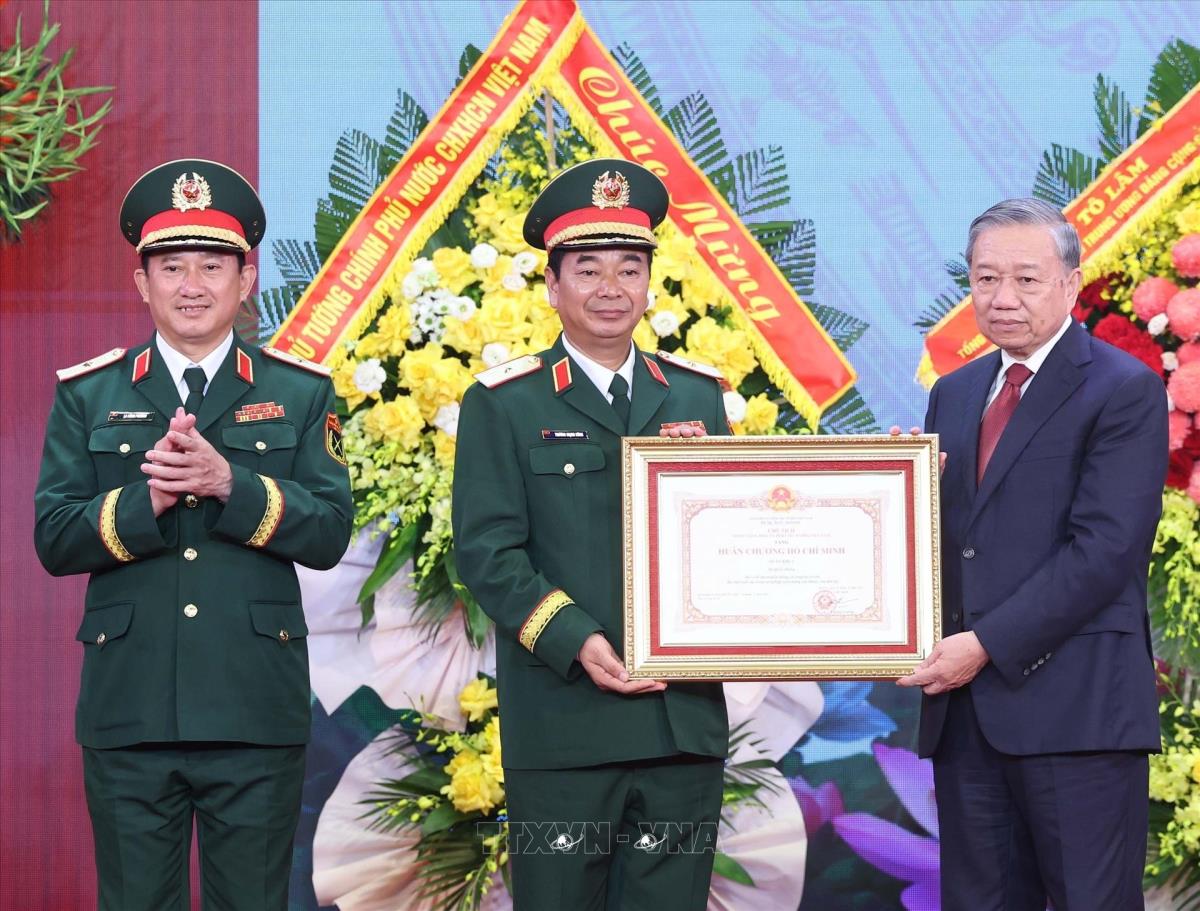 Tổng Bí thư Tô Lâm, Bí thư Quân uỷ Trung ương trao Huân chương Hồ Chí Minh tặng Quân khu 1 (16/10/2025). Ảnh: Thống Nhất-TTXVN
