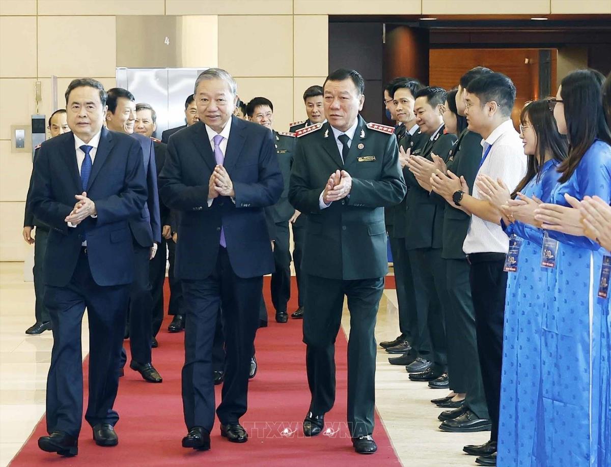 Tổng Bí thư Tô Lâm, Chủ tịch Quốc hội Trần Thanh Mẫn và các đại biểu. Ảnh: Thống Nhất - TTXVN