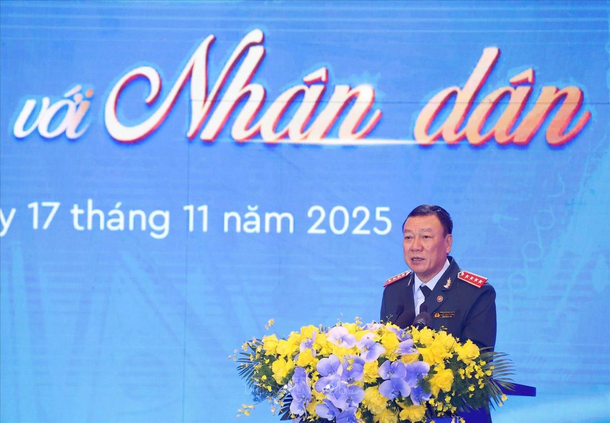 Đồng chí Đoàn Hồng Phong, Ủy viên Trung ương Đảng, Tổng Thanh tra Chính phủ trình bày Diễn văn kỷ niệm 80 năm Ngày truyền thống Thanh tra Việt Nam (16/11/2025). Ảnh: Văn Điệp - TTXVN