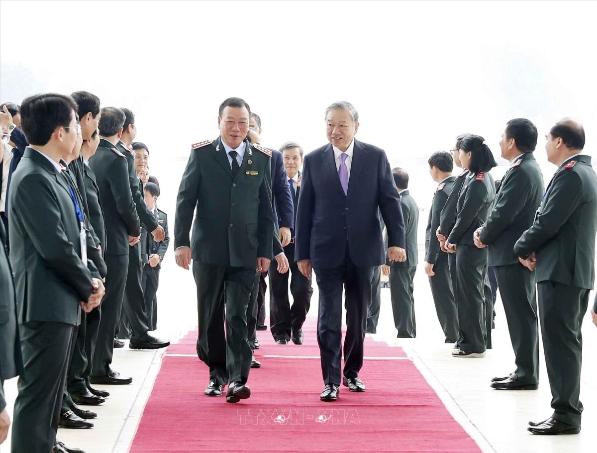 Tổng Bí thư Tô Lâm, Chủ tịch Quốc hội Trần Thanh Mẫn cùng các lãnh đạo Đảng, Nhà nước đến dự Lễ kỷ niệm 80 năm Ngày truyền thống Thanh tra Việt Nam (23/11/1945 - 23/11/2025). Ảnh: Thống Nhất - TTXVN