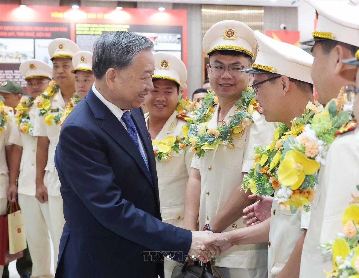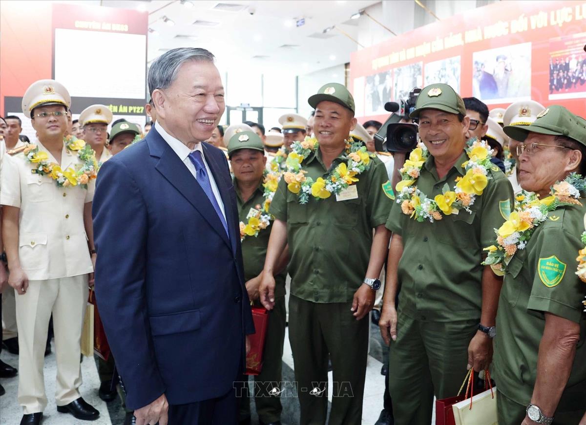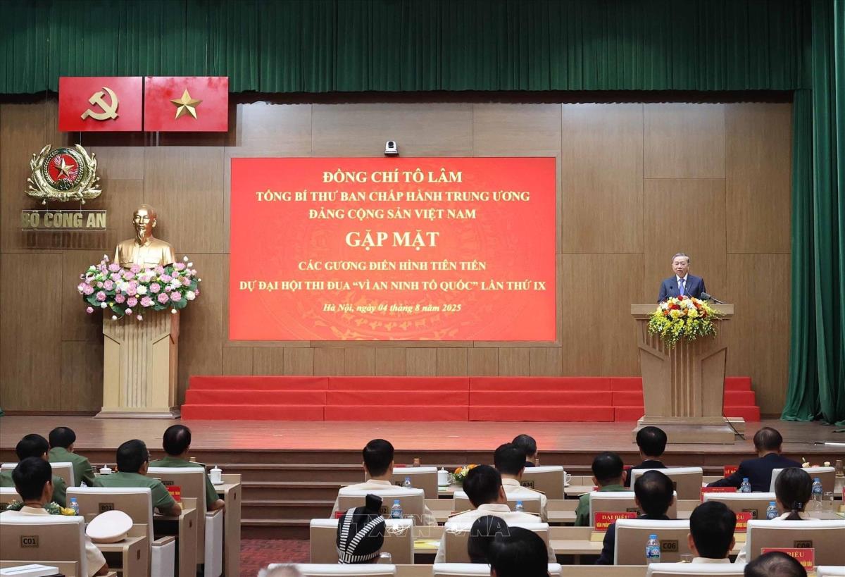 Tổng Bí thư Tô Lâm dự gặp mặt các điển hình tiên tiến dự Đại hội thi đua” Vì An ninh tổ quốc” lần thứ IX (4/8/2025). Ảnh: Thống Nhất - TTXVN