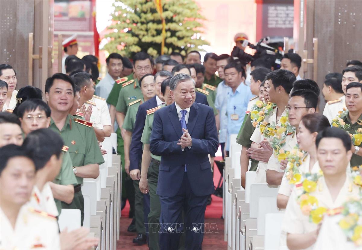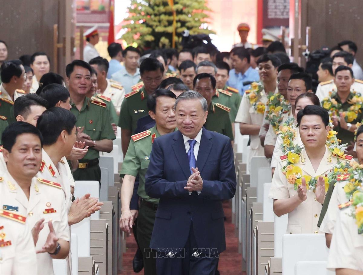 Tổng Bí thư Tô Lâm đến dự gặp mặt các điển hình tiên tiến dự Đại hội thi đua” Vì An ninh tổ quốc” lần thứ IX (4/8/2025). Ảnh: Thống Nhất - TTXVN