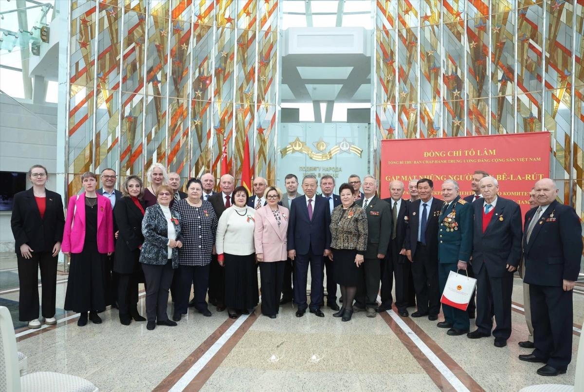 Hà Nội (TTXVN 11/5/2025) Trong chương trình thăm cấp Nhà nước tới Belarus, chiều 11/5/2025, giờ địa phương (tối cùng ngày, giờ Hà Nội), Tổng Bí thư Tô Lâm gặp mặt các cựu quân nhân, chuyên gia Belarus và những người bạn Belarus từng có đóng góp nổi bật cho Việt Nam