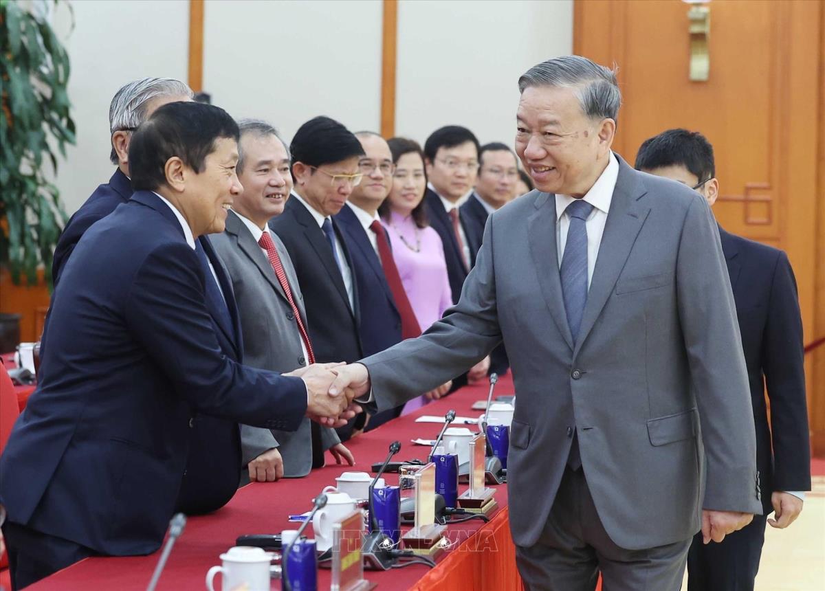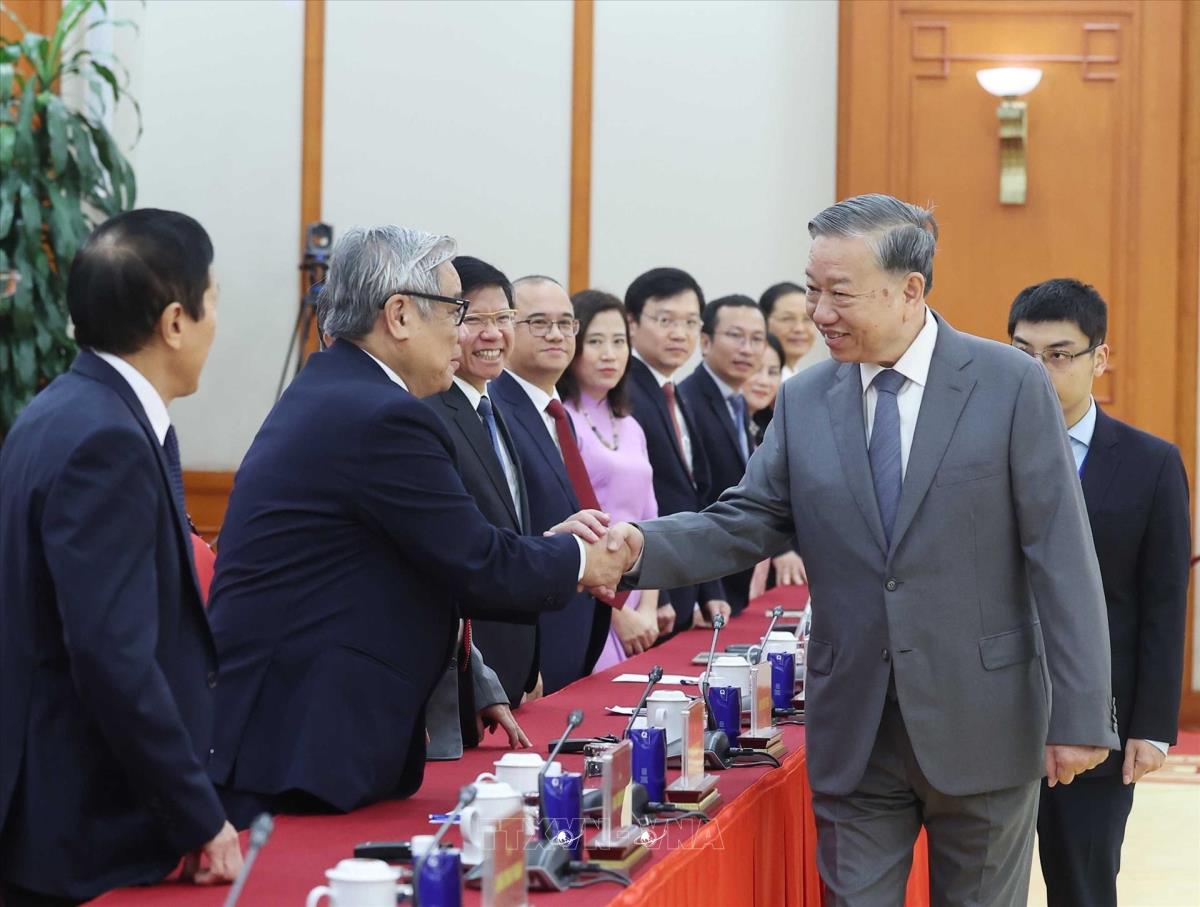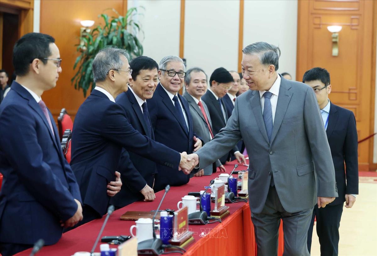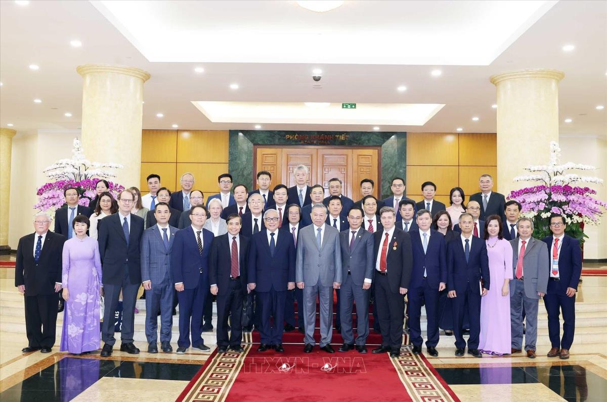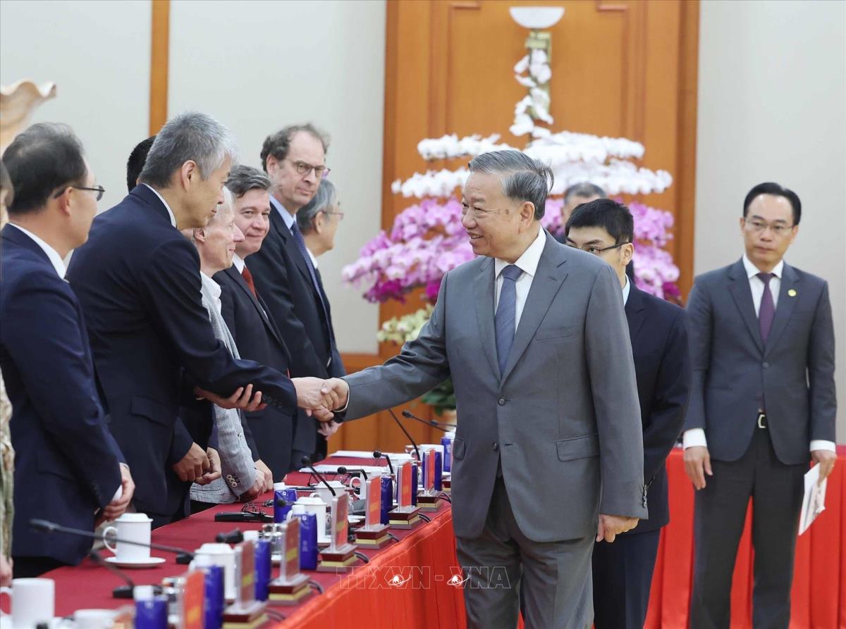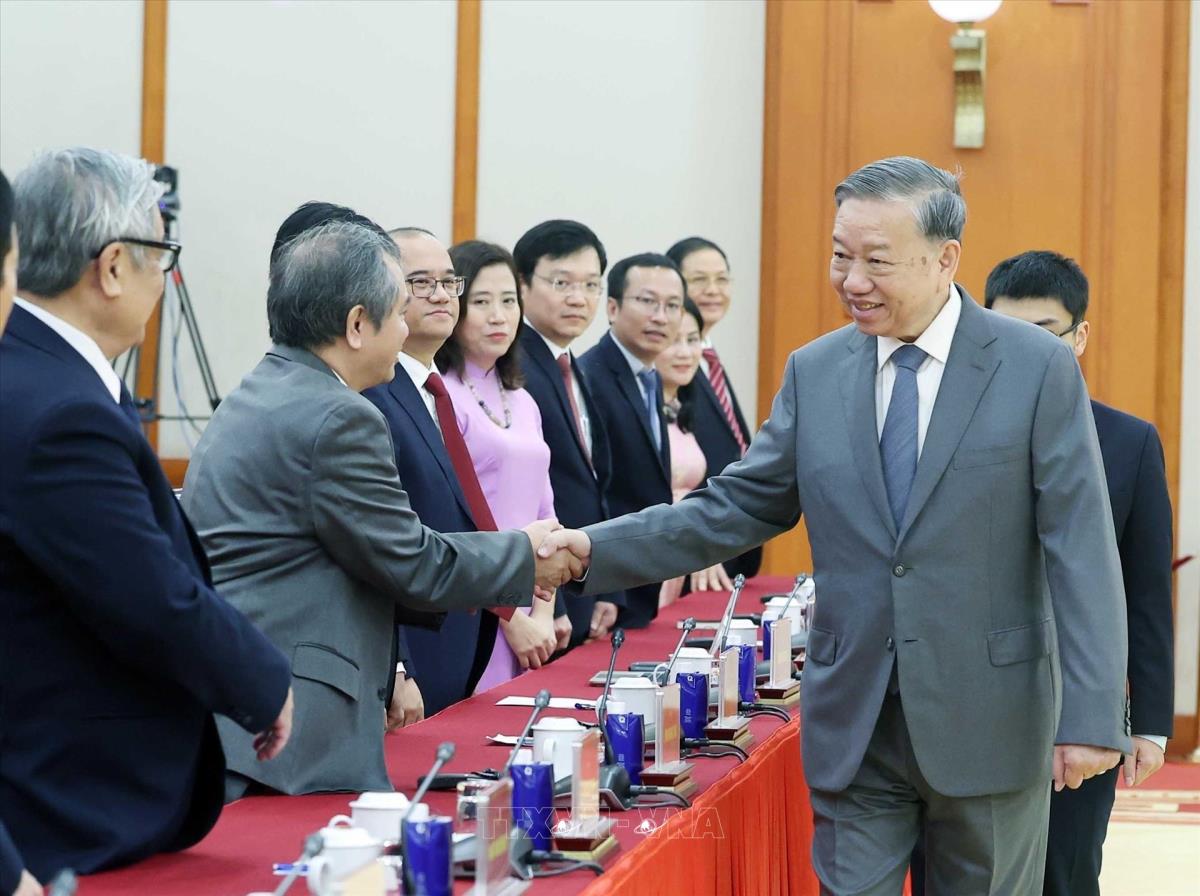 Tổng Bí thư Tô Lâm tiếp Đoàn đại biểu tham dự Hội thảo quốc tế Việt Nam học lần thứ 7 (26/10/2025). Ảnh: Thống Nhất - TTXVN