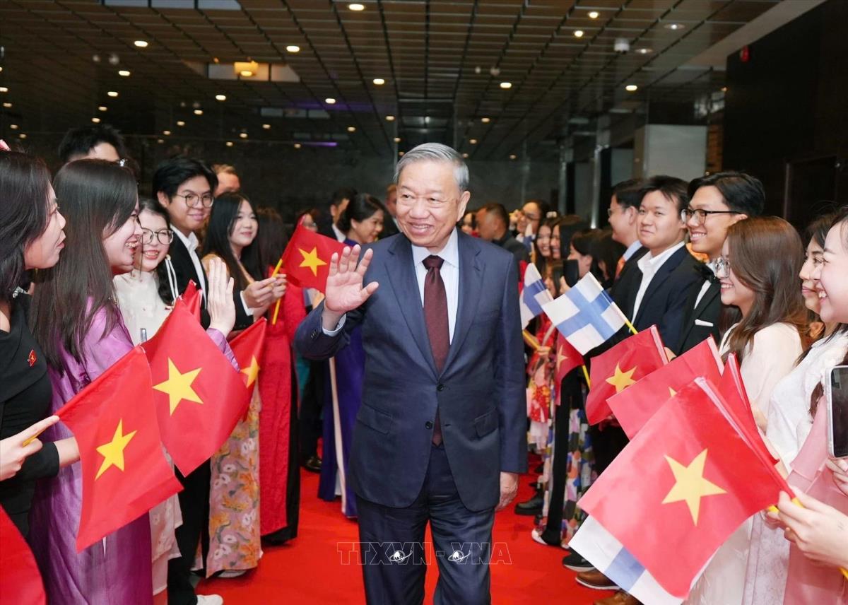 Cộng đồng người Việt Nam tại Phần Lan đón Tổng Bí thư Tô Lâm và Phu nhân (20/10/2025). Ảnh: Thống Nhất – TTXVN