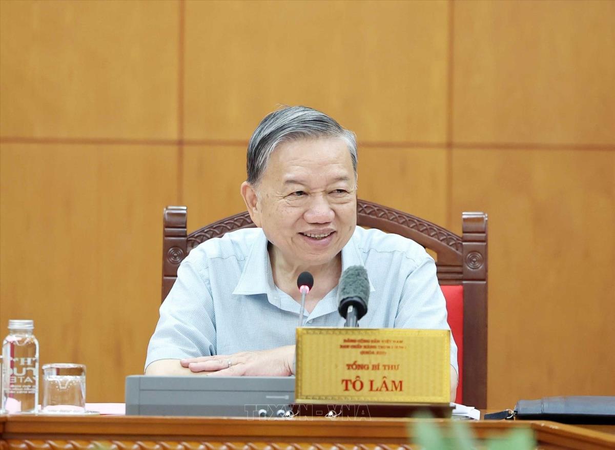 Hà Nội (TTXVN 3/10/2025) Chiều 3/10/2025, tại Trụ sở Trung ương Đảng, Tổng Bí thư Tô Lâm chủ trì buổi làm việc với Bộ Nội vụ, Bộ Nông nghiệp và Môi trường về rà soát tình hình sắp xếp các đơn vị sự nghiệp công lập thực hiện nhiệm vụ Khuyến nông ở địa phương khi vận hành mô hình chính quyền địa phương hai cấp.