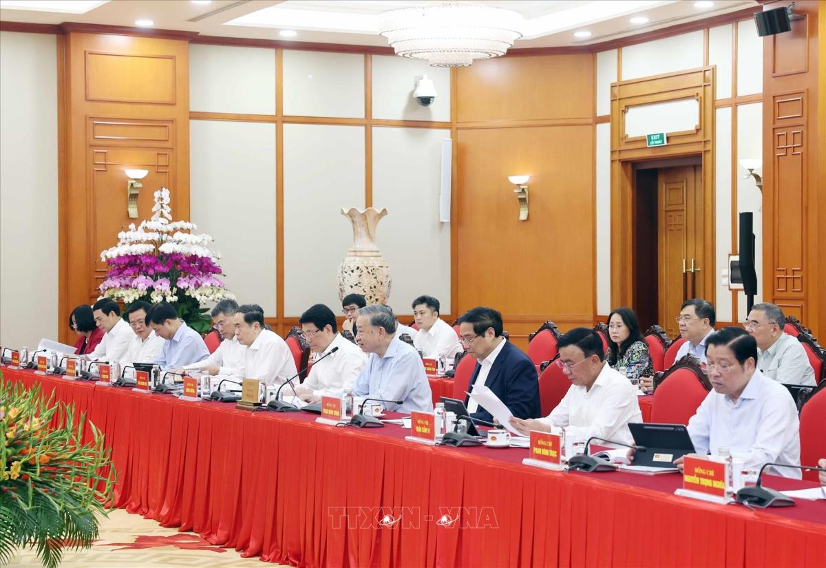 Sáng 8/9/2025, tại Trụ sở Trung ương Đảng, Tổng Bí thư Tô Lâm chủ trì cuộc làm việc của Bộ Chính trị với Ban Thường vụ Đảng uỷ Công an Trung ương để cho ý kiến vào dự thảo văn kiện, phương án nhân sự cấp uỷ và công tác chuẩn bị Đại hội đại biểu Đảng bộ Công an Trung ương nhiệm kỳ 2025-2030.