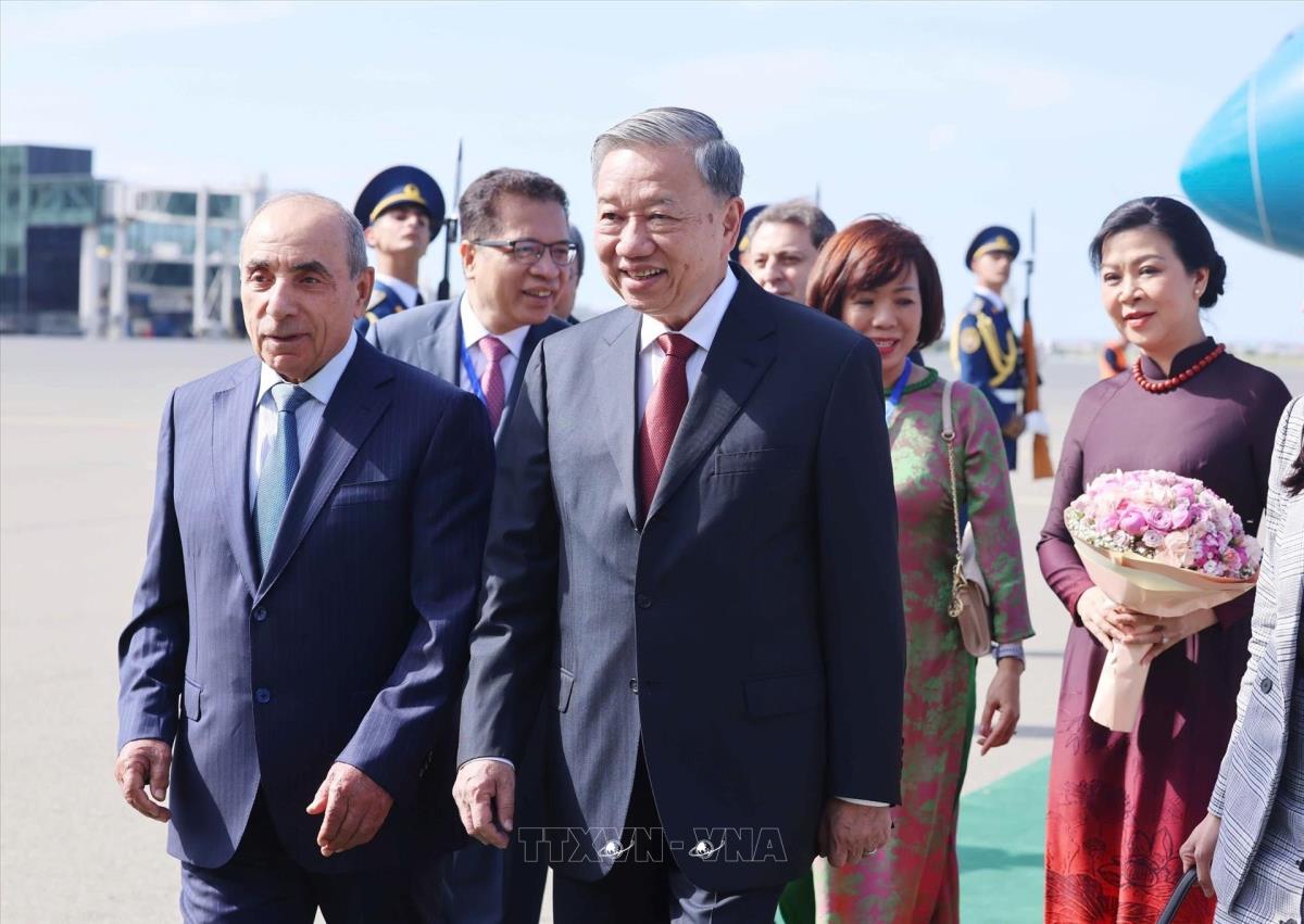 Hà Nội (TTXVN 7/5/2025) Chiều 7/5/2025, giờ địa phương (tối cùng ngày, giờ Hà Nội), Tổng Bí thư Tô Lâm và Phu nhân cùng đoàn đại biểu cấp cao Việt Nam đến thủ đô Baku, bắt đầu chuyến thăm cấp Nhà nước tới Cộng hòa Azerbaijan từ ngày 7-8/5/2025 theo lời mời của Tổng thống Ilham Aliyev.