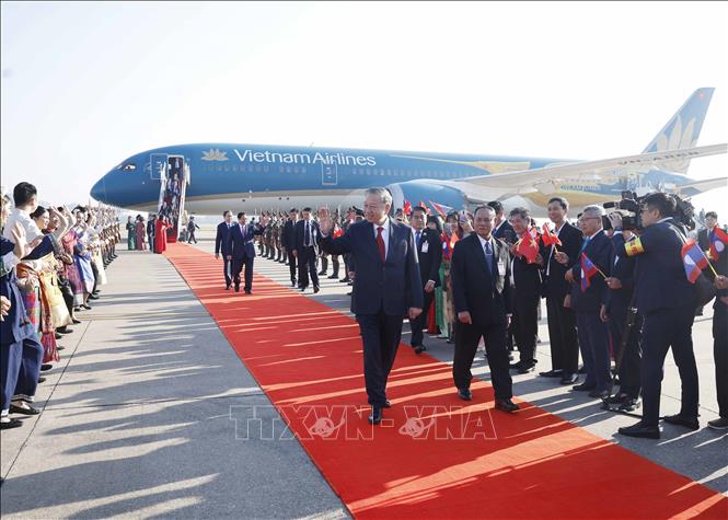 Hà Nội (TTXVN 5/2/2026) Theo đặc phái viên TTXVN, sáng 5/2, chuyên cơ chở Tổng Bí thư Tô Lâm và đoàn đại biểu cấp cao Việt Nam đã đến sân bay quốc tế Wattay, thủ đô Viêng Chăn, bắt đầu chuyến thăm cấp Nhà nước tới Cộng hòa Dân chủ Nhân dân Lào, theo lời mời của Tổng Bí thư Ban Chấp hành Trung ương Đảng Nhân dân Cách mạng Lào, Chủ tịch nước Cộng hòa Dân chủ Nhân dân Lào Thongloun Sisoulith.