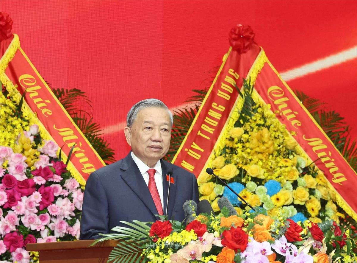 Tổng Bí thư Tô Lâm phát biểu chỉ đạo tại Đại hội đại biểu Đảng bộ Chính phủ lần thứ nhất, nhiệm kỳ 2025-2030 (13/10/2025). Ảnh: Phạm Kiên - TTXVN