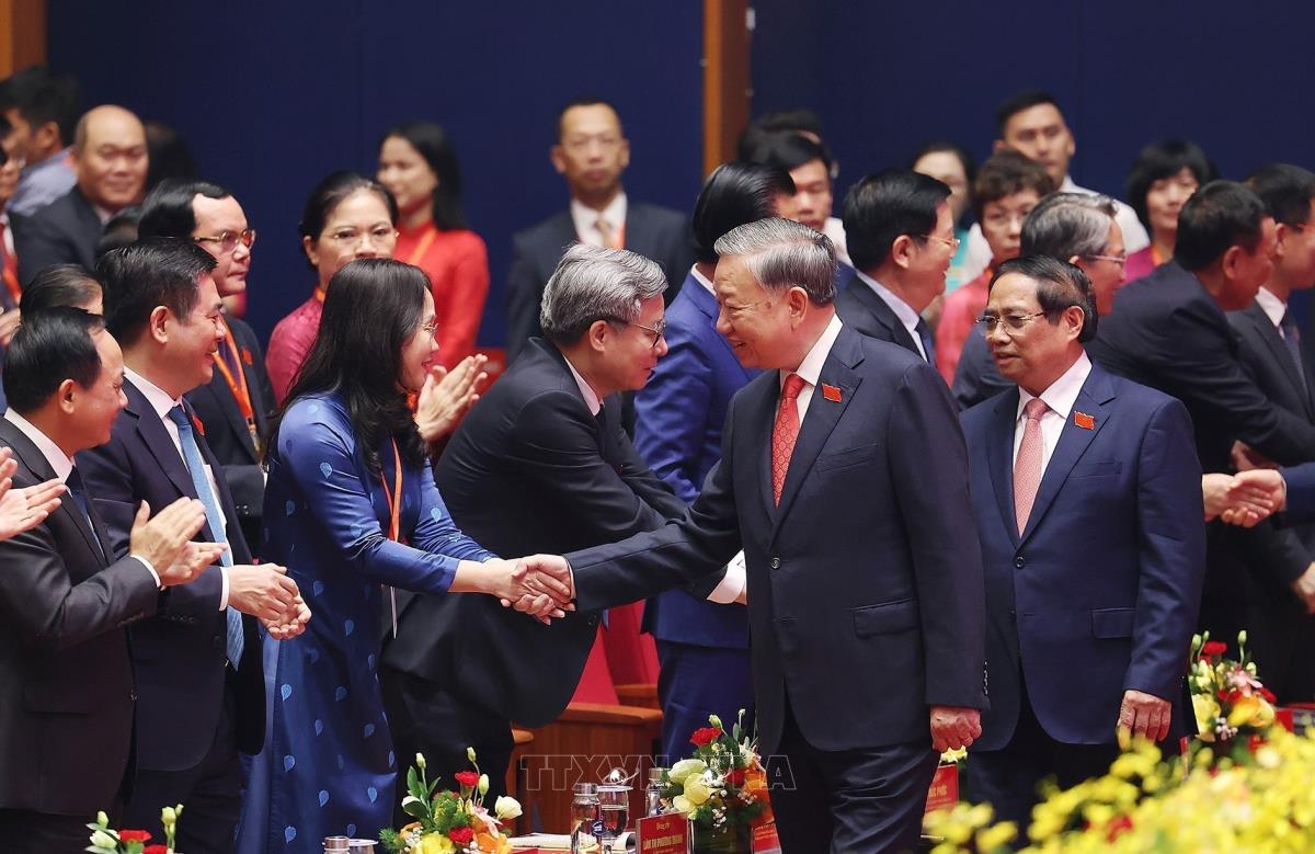 Tổng Bí thư Tô Lâm đến dự Đại hội (13/10/2025). Ảnh: Thống Nhất - TTXVN
