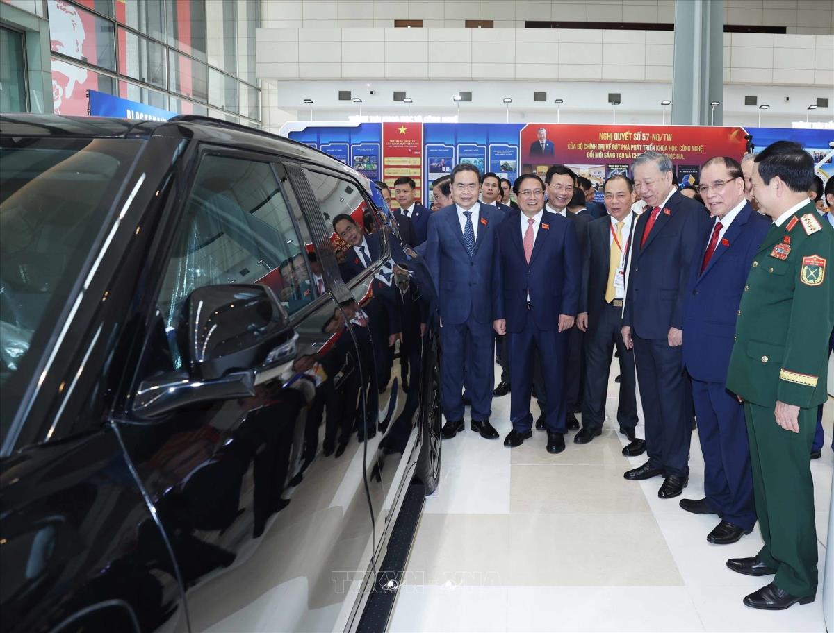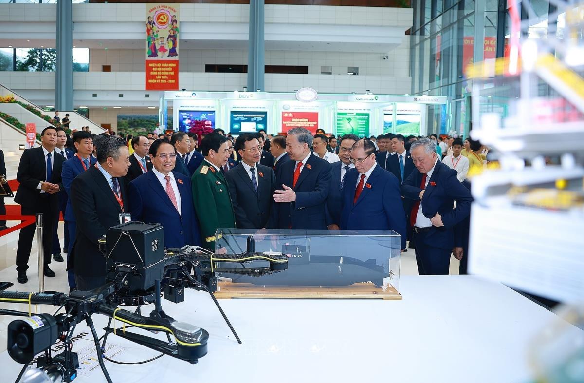 Tổng Bí thư Tô Lâm tham quan triển lãm thành tựu phát triển khoa học, công nghệ và đổi mới sáng tạo và chuyển đổi số của Chính phủ (13/10/2025). Ảnh: Văn Điệp - TTXVN