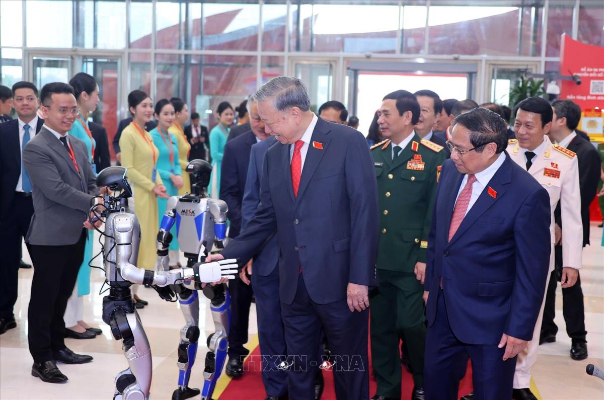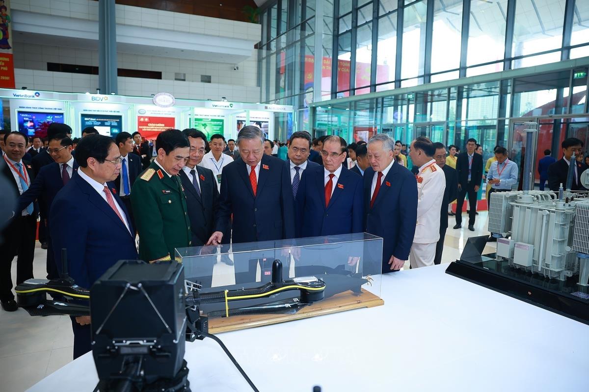 Tổng Bí thư Tô Lâm tham quan triển lãm thành tựu phát triển khoa học, công nghệ và đổi mới sáng tạo và chuyển đổi số của Chính phủ (13/10/2025). Ảnh: Dương Giang-TTXVN