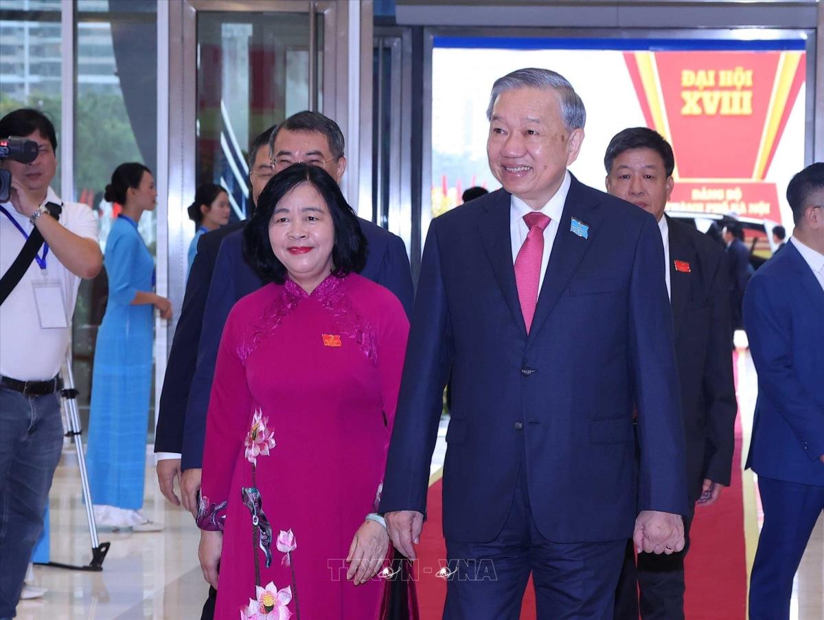 Hà Nội (TTXVN 16/10/2025) Với chủ đề “Phát huy truyền thống ngàn năm văn hiến và anh hùng; đoàn kết xây dựng đảng bộ trong sạch, vững mạnh; tiên phong, đột phá trong kỷ nguyên mới; phát triển Thủ đô văn minh, hiện đại, hạnh phúc”, sáng 16/10/2025, tại Trung tâm Hội nghị Quốc gia (Hà Nội), Đại hội đại biểu Đảng bộ thành phố Hà Nội lần thứ XVIII, nhiệm kỳ 2025-2030 chính thức khai mạc với sự tham dự của 550 đại biểu đại diện cho gần 50 vạn đảng viên của 136 đảng bộ trực thuộc Đảng bộ Hà Nội. Tổng Bí thư Tô Lâm dự và chỉ đạo Đại hội.