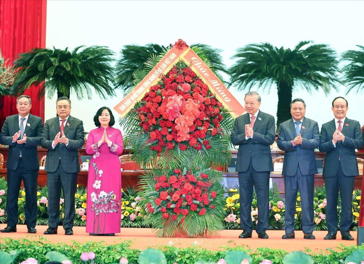 Tổng Bí thư Tô Lâm chúc mừng Đại hội (16/10/2025). Ảnh: Thống Nhất - TTXVN