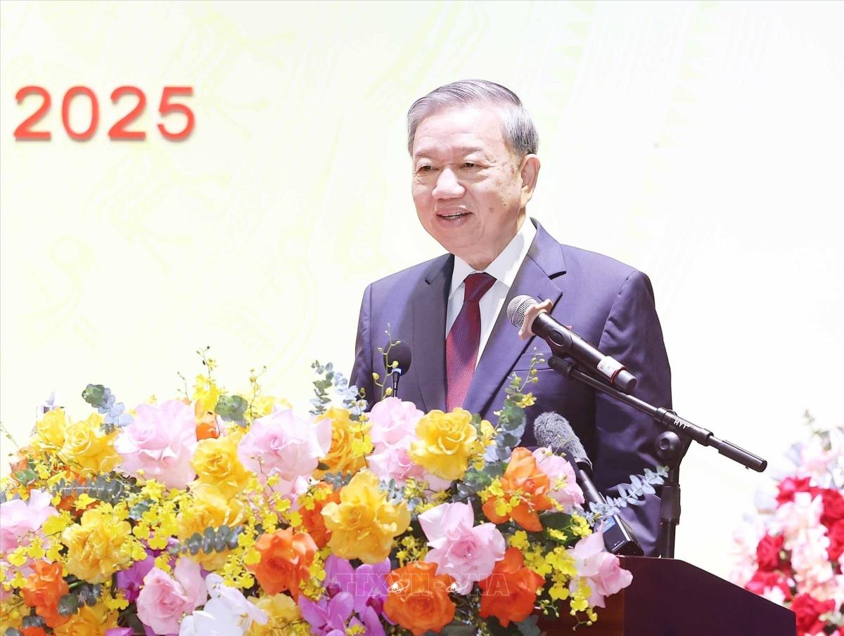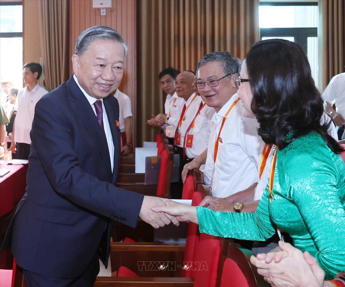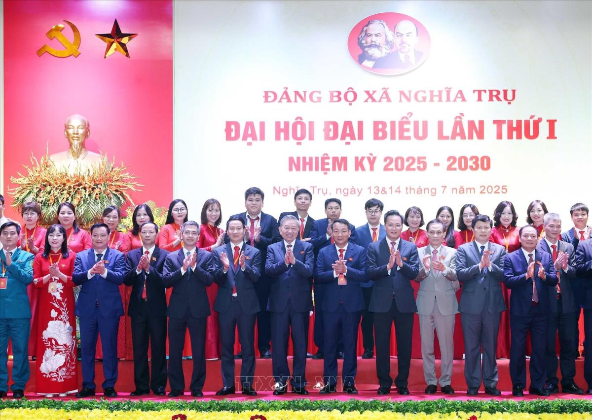 Tổng Bí thư Tô Lâm dự Đại hội đại biểu Đảng bộ xã Nghĩa Trụ lần thứ nhất, nhiệm kỳ 2025 - 2030 (14/7/2025). Ảnh: Thống Nhất – TTXVN