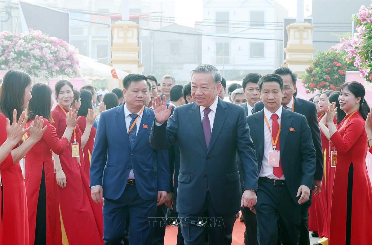 Tổng Bí thư Tô Lâm dự Đại hội đại biểu Đảng bộ xã Nghĩa Trụ lần thứ nhất, nhiệm kỳ 2025 - 2030. Ảnh: Thống Nhất – TTXVN