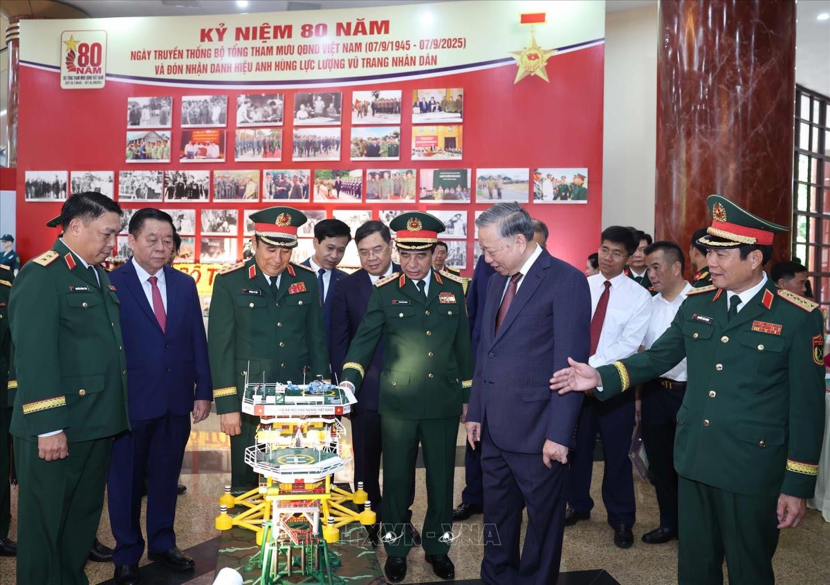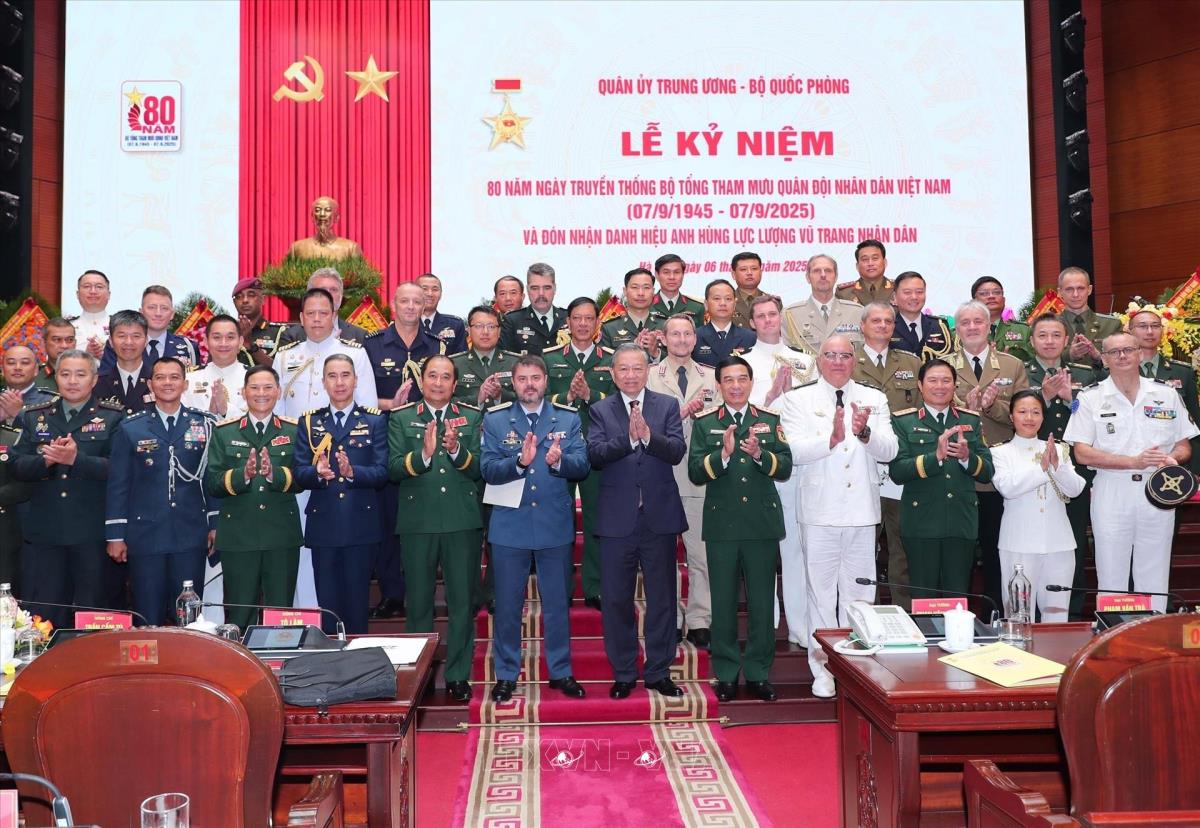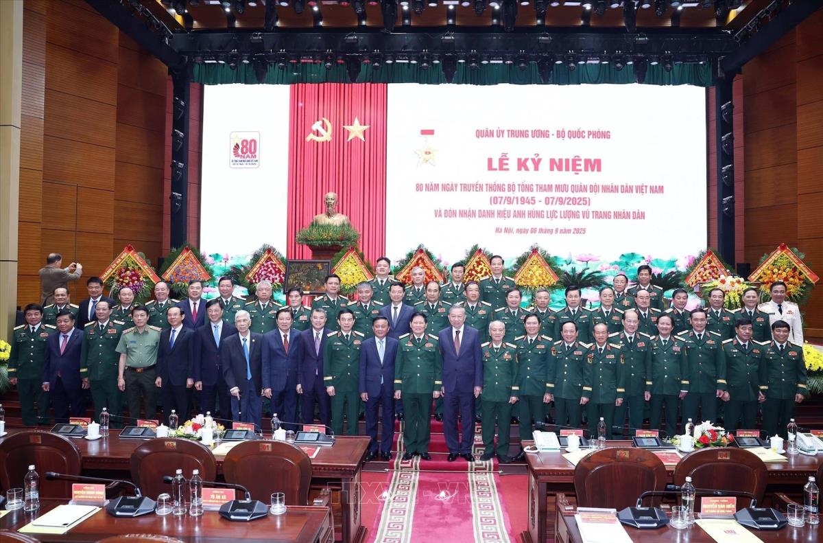 Hà Nội (TTXVN 6/9/2025) Sáng 6/9/2025, tại Hà Nội, Tổng Bí thư Tô Lâm, các đồng chí lãnh đạo, nguyên lãnh đạo Đảng Nhà nước dự Lễ kỷ niệm 80 năm Ngày truyền thống Bộ tổng Tham mưu Quân đội nhân dân Việt Nam(7/9/1945-7/9/2025) và đón nhận Danh hiệu Anh hùng lực lượng vũ trang nhân dân.