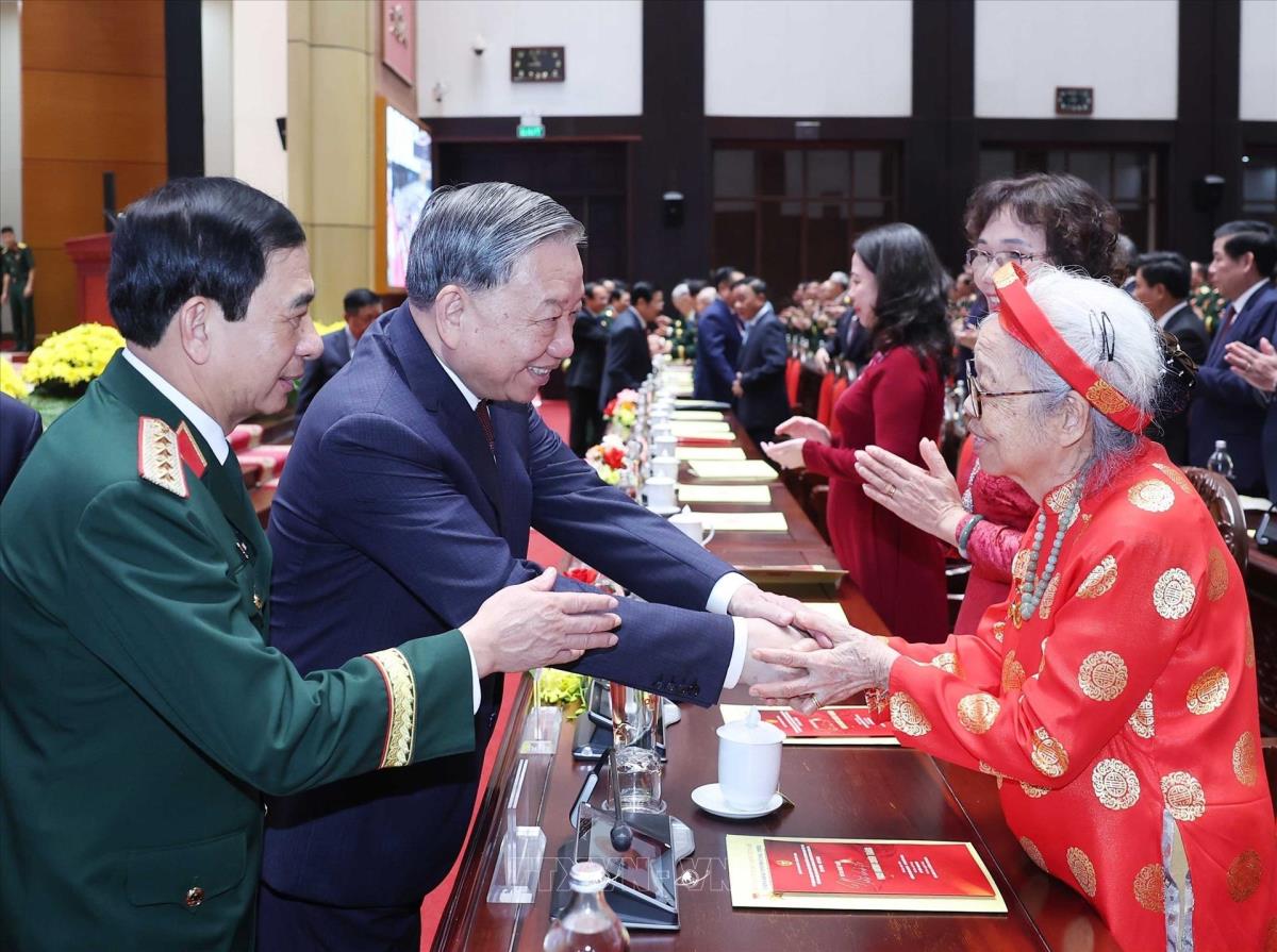 Tổng Bí thư Tô Lâm gặp gỡ Mẹ Việt Nam Anh hùng tại lễ kỷ niệm (6/92025). Ảnh: Thống Nhất - TTXVN
