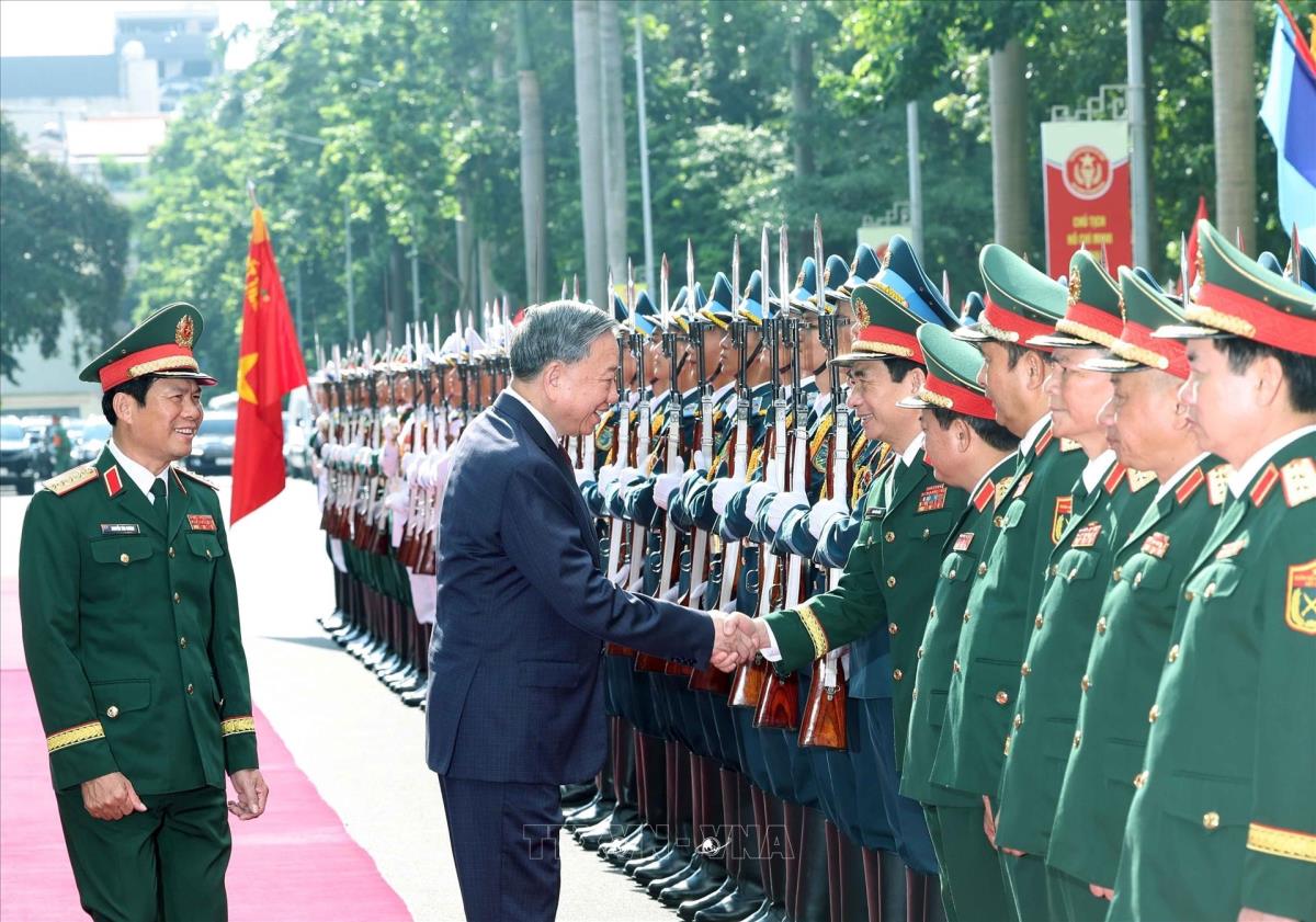 Lễ đón Tổng Bí thư Tô Lâm đến dự Lễ kỷ niệm 80 năm Ngày truyền thống Bộ Tổng Tham mưu Quân đội nhân dân Việt Nam. Ảnh: Thống Nhất – TTXVN