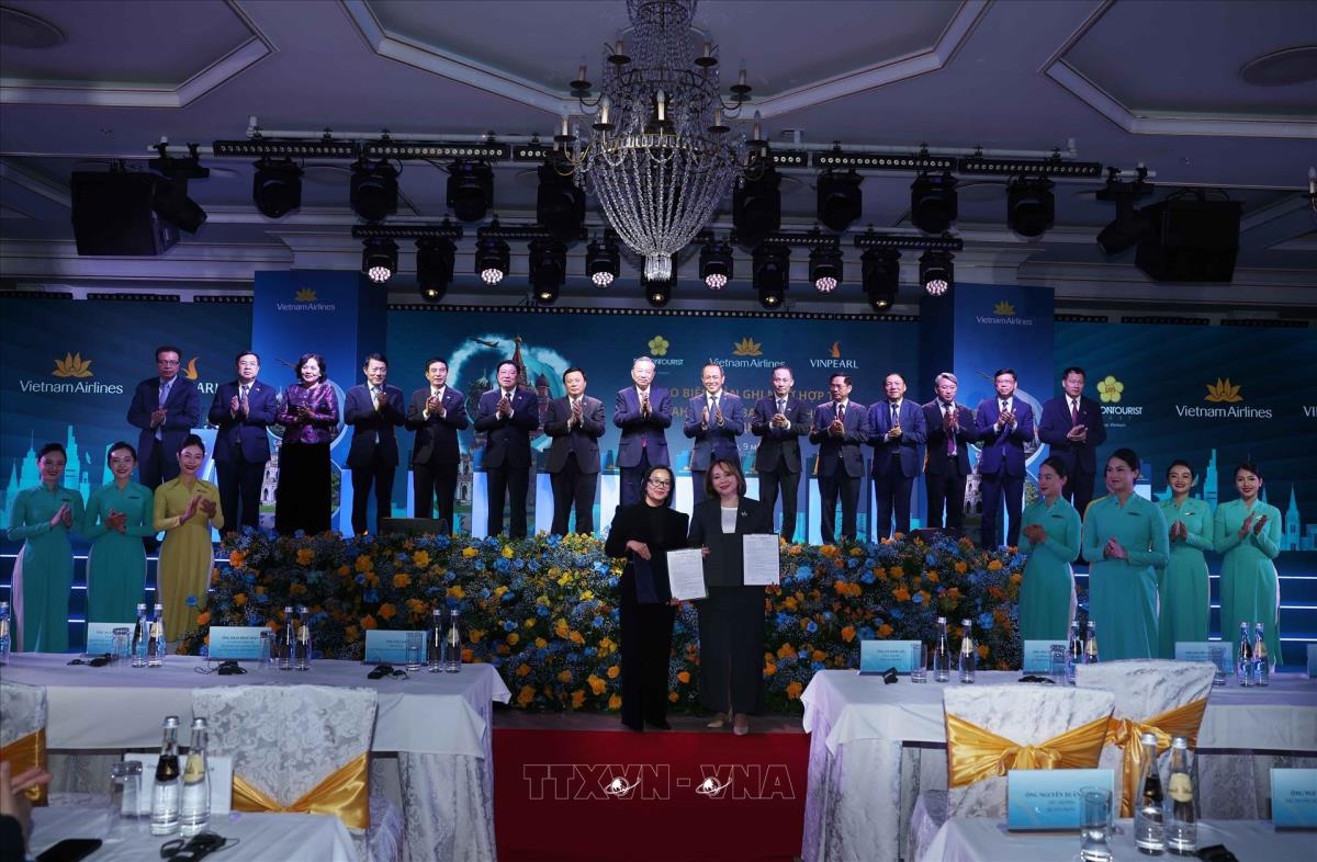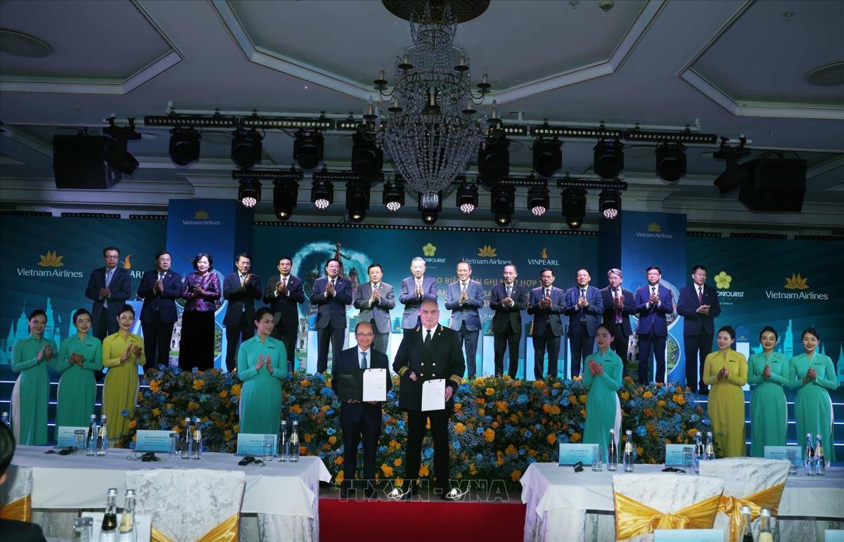 Trong chuyến thăm chính thức Liên bang Nga và dự Lễ kỷ niệm 80 năm Ngày Chiến thắng, chiều 9/5/2025, tại thủ đô Moskva, Tổng Bí thư Tô Lâm dự Lễ công bố đường bay thẳng Hà Nội - Moskva của hãng hàng không Vietnam Airlines
